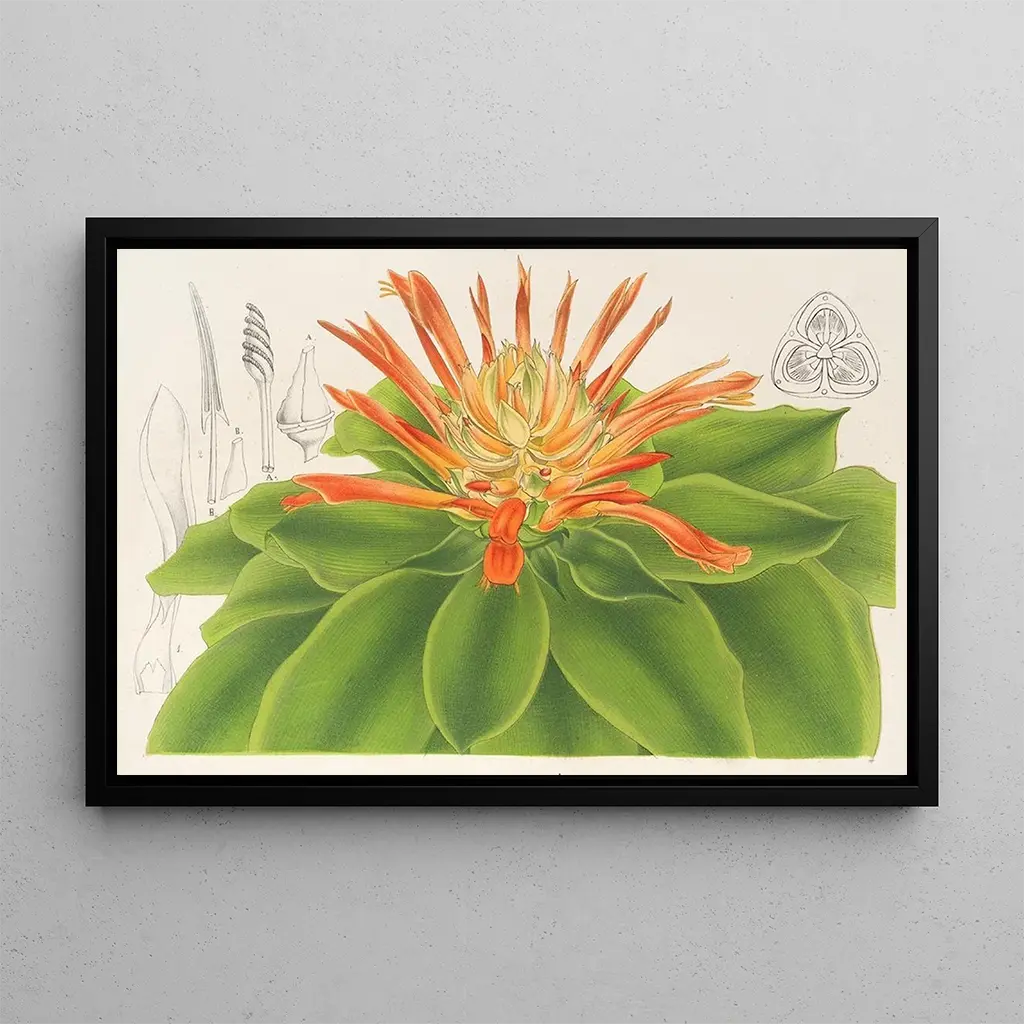 Pitcairnia tabuliformis : eine Explosion tropischer Farben Die kunstdruck von Pitcairnia tabuliformis entführt uns in eine lebendige Welt, in der die Natur mit beeindruckender Intensität zum Ausdruck kommt. Die leuchtenden Farbtöne von Grün, Rot und Gelb verschmelzen harmonisch und schaffen eine Atmosphäre, die sowohl warmherzig als auch belebend ist. Die Technik des Künstlers, der mit Licht und Schatten spielt, betont die Reliefs der Blätter und Blumen und erweckt dieses botanische Werk zum Leben. Jedes Detail ist sorgfältig wiedergegeben und lädt den Betrachter ein, die Schönheit der Formen und Farben zu bewundern, die diese tropische Szene ausmachen. Charles Antoine Lemaire : ein Pionier der botanischen Kunst Charles Antoine Lemaire, Botaniker und Künstler des 19. Jahrhunderts, verstand es, Wissenschaft und Ästhetik in seinen Werken zu vereinen. Beeinflusst von den botanischen Expeditionen seiner Zeit, widmete er seine Karriere der genauen Darstellung exotischer Pflanzen. Lemaire ist bekannt für seinen akribischen Ansatz und seine Liebe zum Detail, was ihm ermöglichte, die Essenz der Arten, die er malte, einzufangen. Seine Arbeiten trugen zur Popularisierung der botanischen Kunst bei und machten ihn zu einer bedeutenden Figur in diesem Bereich. Seine Werke, wie der Kunstdruck von Pitcairnia tabuliformis, zeugen von seinem Talent und seiner Leidenschaft für die Natur. Eine dekorative Anschaffung mit vielfältigen Vorteilen Die Entscheidung für den Kunstdruck von Pitcairnia tabuliformis bedeutet, eine Leinwand zu wählen, die Ihrem Interieur einen Hauch Exotik verleiht. Ob im Wohnzimmer, im Büro oder im Schlafzimmer – dieses Werk wird die Blicke auf sich ziehen und Gespräche anregen. Die Druckqualität garantiert eine treue Wiedergabe der Farben und Details des Originals und bietet gleichzeitig eine ästhetisch ansprechende Optik. Mit diesem Kunstdruck in Ihrer Dekoration schaffen Sie einen Raum, in dem Natur und Kunst aufeinandertreffen und eine warme, einladende Atmosphäre schaffen.