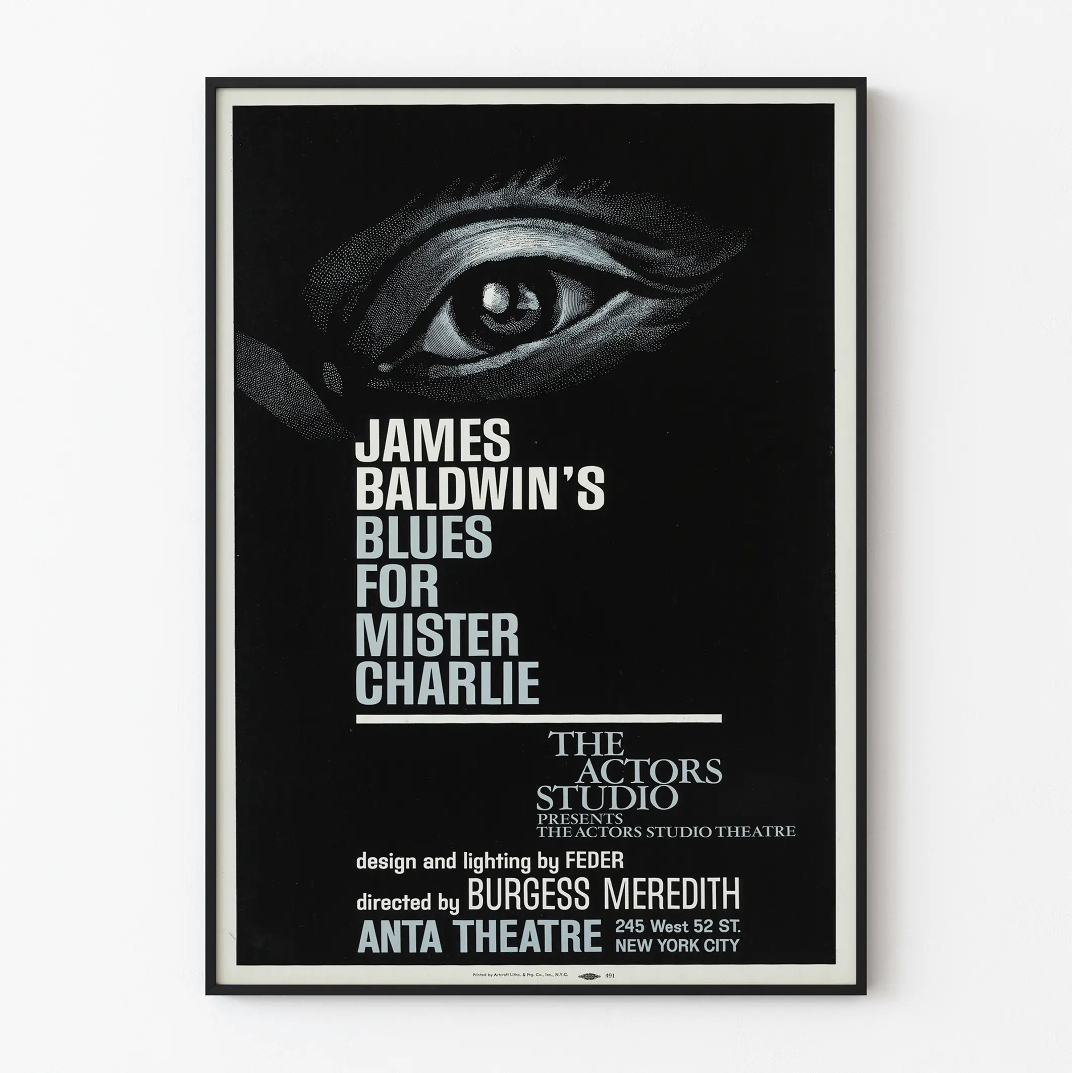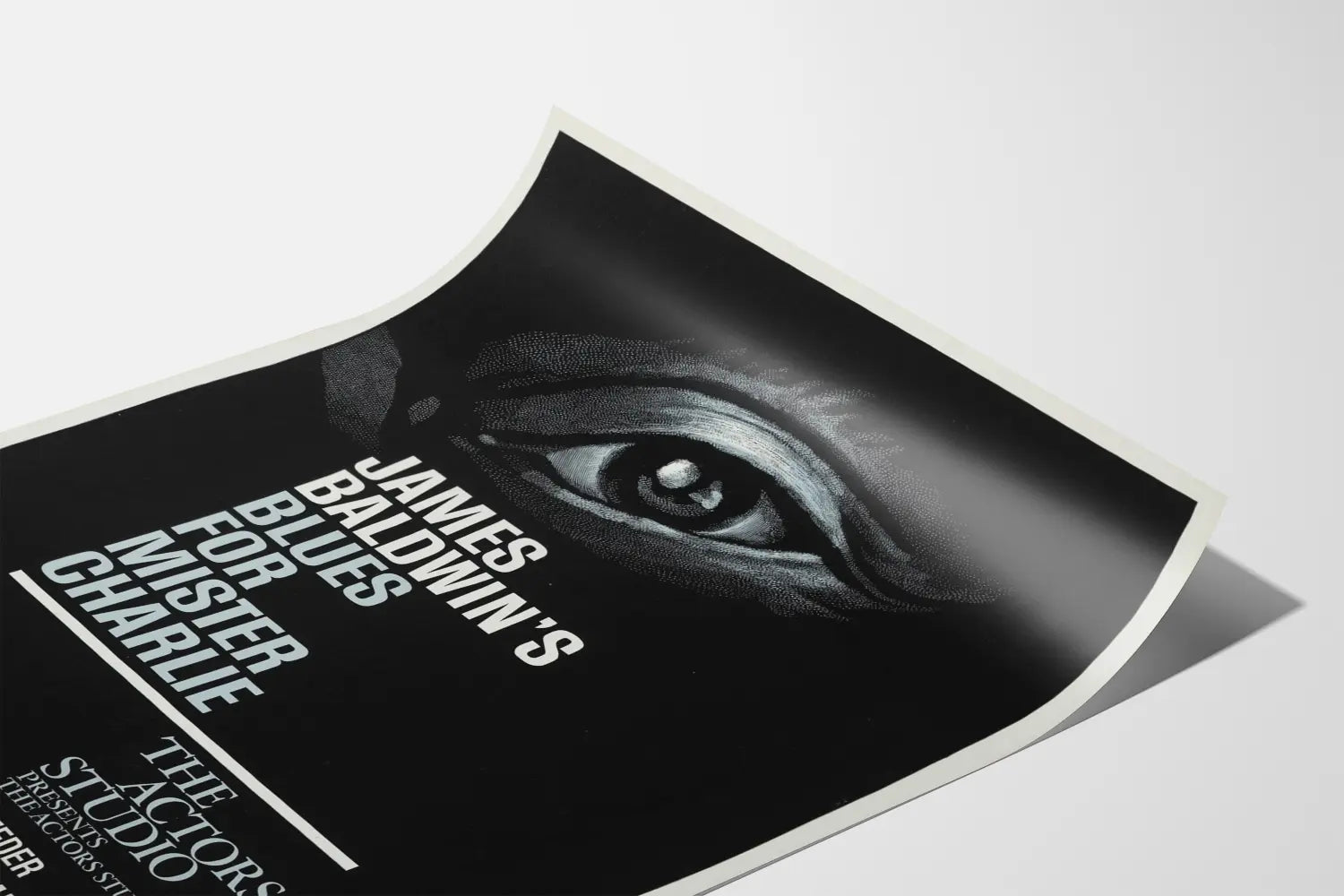 Dieses Poster „Blues for Mister Charlie“ ist ein ikonisches Wanddekorationselement, perfekt für Liebhaber des Theaters und eleganter grafischer Designs. Das Motiv zeigt ein stilisiertes Auge mit weißen Mustern auf schwarzem Hintergrund, das einen eindrucksvollen Kontrast schafft und sofort den Blick auf sich zieht. Die grafische Komposition ist klar und modern, verbindet weiße und hellgraue Typografie mit präzisen Linien, was es sowohl künstlerisch als auch minimalistisch macht.