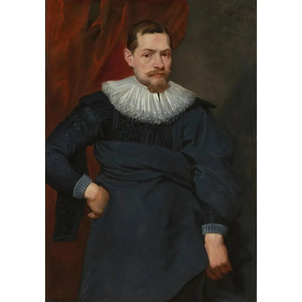 Antoine van Dyck, Schüler von Rubens, ist einer der bedeutendsten Portraitkünstler des 17. Jahrhunderts. Hauptsächlich in Flandern und England tätig, verstand er es, die Einflüsse der flämischen Malerei mit einem eleganteren und raffinierten Stil zu verbinden. Seine Fähigkeit, die Persönlichkeit seiner Subjekte einzufangen, machte ihn zu einem gefragten Künstler der europäischen Adelsschicht. "Portrait eines Mannes" veranschaulicht sein Talent perfekt und zeugt von der Bedeutung seines Werks für die Entwicklung des barocken Portraits. Van Dyck setzte einen neuen Standard für die Darstellung aristokratischer Figuren und beeinflusste zahlreiche zukünftige Künstler.