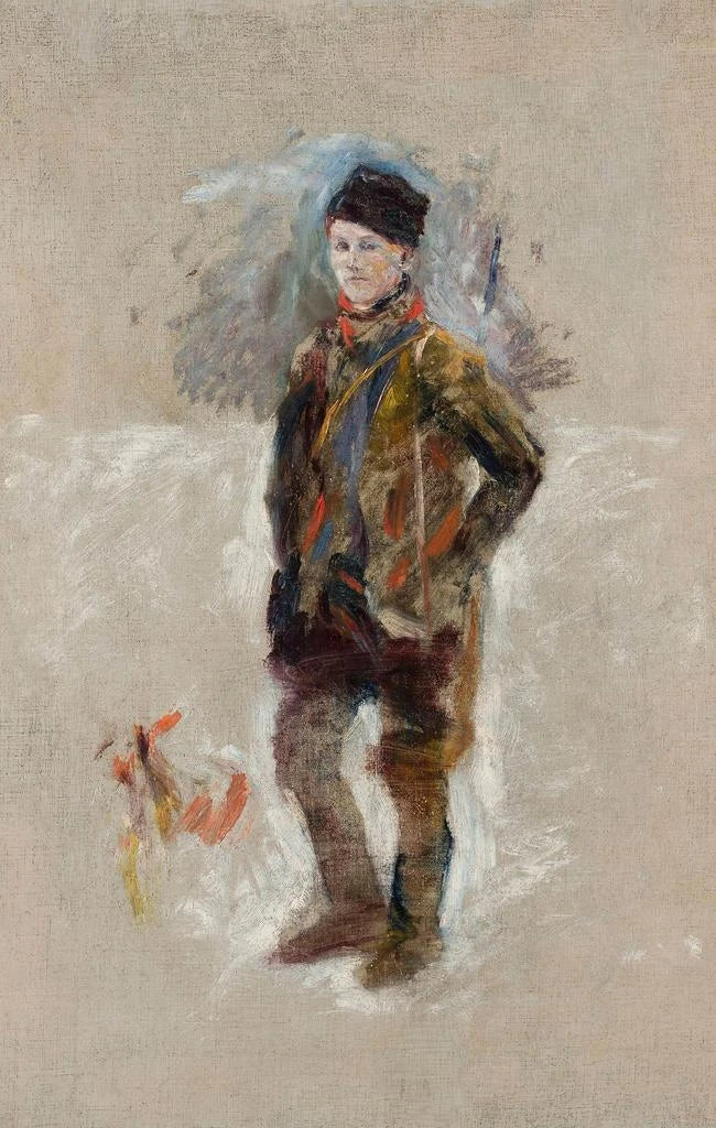 In dieser kunstdruck-Version des Porträts von Gocimiński fängt Władysław Podkowiński das Wesen seines Subjekts mit einer Palette warmer Farben und dynamischer Pinselstriche ein. Das Werk, ausgeführt mit impressionistischer Technik, evoziert eine Atmosphäre, die sowohl intim als auch lebendig ist. Die zarten Details des Gesichts von Gocimiński, verbunden mit einem verschwommenen Hintergrund, schaffen einen beeindruckenden Kontrast, der den Blick auf sich zieht. Diese Skizze, obwohl einfach in ihrer Komposition, offenbart eine emotionale Tiefe, die zur Kontemplation und persönlichen Interpretation einlädt.