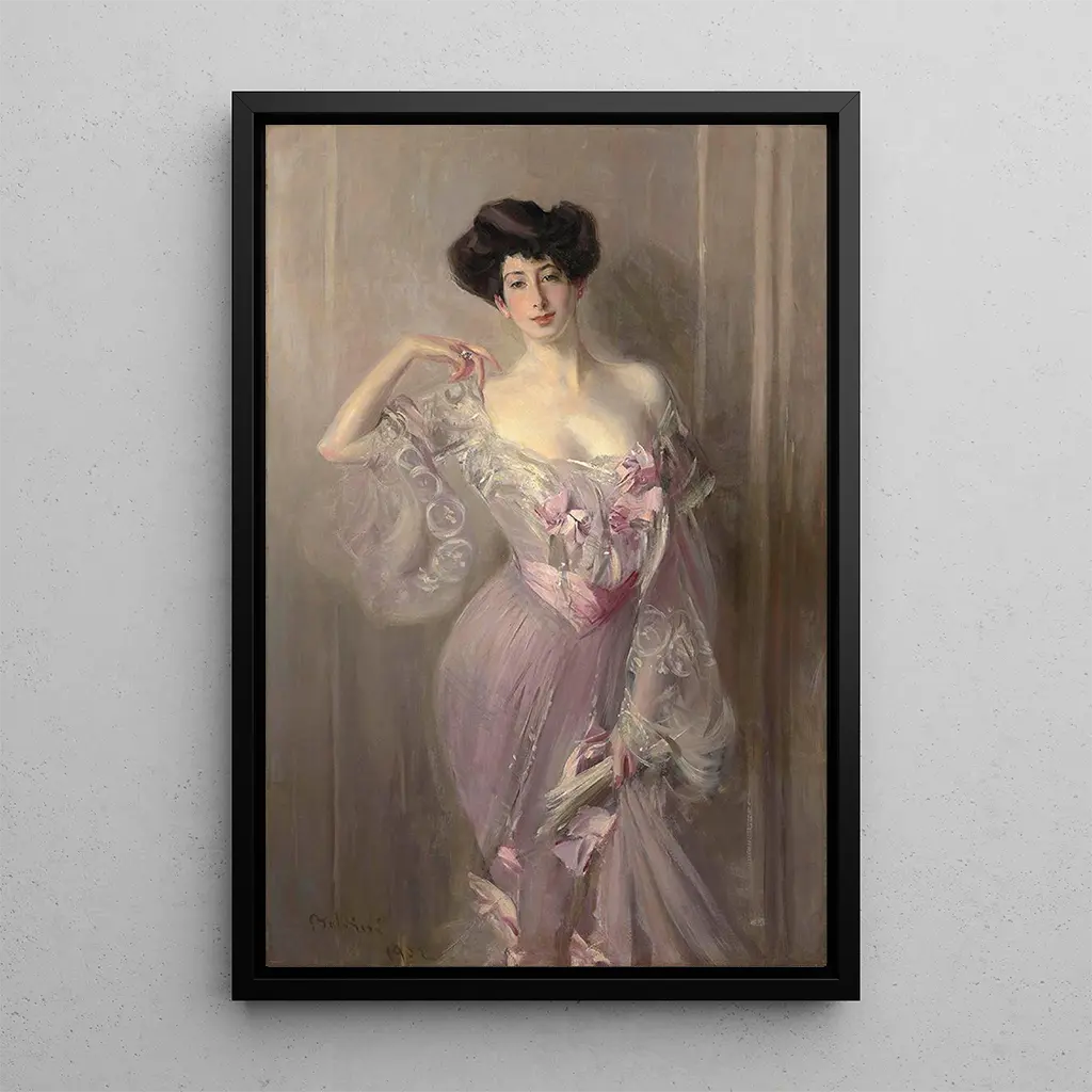 Porträt von Ena Wertheimer : eine Hommage an die weibliche Schönheit Das Gemälde "Porträt von Ena Wertheimer" von Giovanni Boldini ist ein faszinierendes Werk, das durch seine mutige Verwendung von Farben und fließenden Linien besticht. Die Komposition hebt das zarte Gesicht von Ena hervor, dessen funkelnder Blick eine Geschichte zu erzählen scheint. Die Nuancen von Rosa und Blau verschmelzen harmonisch und schaffen eine Atmosphäre, die sowohl intim als auch elegant ist. Die Technik Boldinis, gekennzeichnet durch schnelle, expressive Pinselstriche, erweckt die Leinwand zum Leben und macht die Textur der Kleidung sowie die Weichheit der Haut fast fühlbar. Dieses Porträt verkörpert die Quintessenz weiblicher Schönheit und feiert die Anmut und den Charme ihres Modells. Giovanni Boldini : der Meister des italienischen Porträts Giovanni Boldini, geboren 1842 in Ferrara, ist einer der bedeutendsten Künstler der impressionistischen Bewegung und des Belle Époque-Stils. Beeinflusst von Meistern wie Édouard Manet und John Singer Sargent, entwickelt er einen einzigartigen Stil, der Eleganz und Modernität vereint. Seine Porträts, oft von der High Society, erfassen nicht nur das äußere Erscheinungsbild seiner Subjekte, sondern auch deren Persönlichkeit und Wesen. Boldini hat sich auf der Pariser Kunstszene durchgesetzt und wurde zum Porträtisten der Berühmtheiten seiner Zeit. Sein Werk, reich an Details und Emotionen, inspiriert und fasziniert weiterhin Kunstliebhaber. Eine dekorative Reproduktion mit vielfältigen Vorzügen Die Reproduktion des "Porträt von Ena Wertheimer" ist ein dekoratives Stück, das jeden Raum bereichern kann, sei es ein Wohnzimmer, ein Büro oder ein Schlafzimmer. Die Druckqualität garantiert eine außergewöhnliche Farbtreue und Detailgenauigkeit des Originalwerks, sodass Sie die Ästhetik Boldinis in Ihrem Zuhause genießen können. Dieses Gemälde verleiht Ihrer Einrichtung eine Note von Raffinesse und Charme und weckt gleichzeitig die Neugier und Bewunderung Ihrer Besucher. Mit dieser Leinwand entscheiden Sie sich für ein zeitloses Kunstwerk, das Ihre Dekoration aufwertet und eine warme, einladende Atmosphäre schafft.