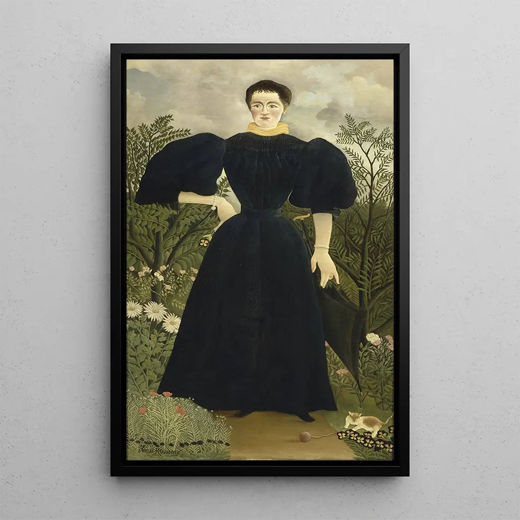 Henri Rousseau, oft als Pionier der naiven Bewegung angesehen, prägte die Kunstgeschichte mit seinem einzigartigen Stil und seiner persönlichen Vision. Geboren 1844, begann Rousseau seine künstlerische Laufbahn erst spät und ließ sich von exotischen Landschaften und Szenen des Stadtlebens inspirieren. Sein Werk zeichnet sich durch eine fantasievolle Herangehensweise und eine Palette lebendiger Farben aus, beeinflusst vom Symbolismus und Post-Impressionismus. Obwohl er von seinen Zeitgenossen kritisiert wurde, gewann seine Arbeit im Laufe der Jahrzehnte an Anerkennung und beeinflusste viele moderne Künstler. Das "Portrait de Madame M" zeugt von seinem Talent, die menschliche Essenz mit berührender Einfachheit einzufangen.