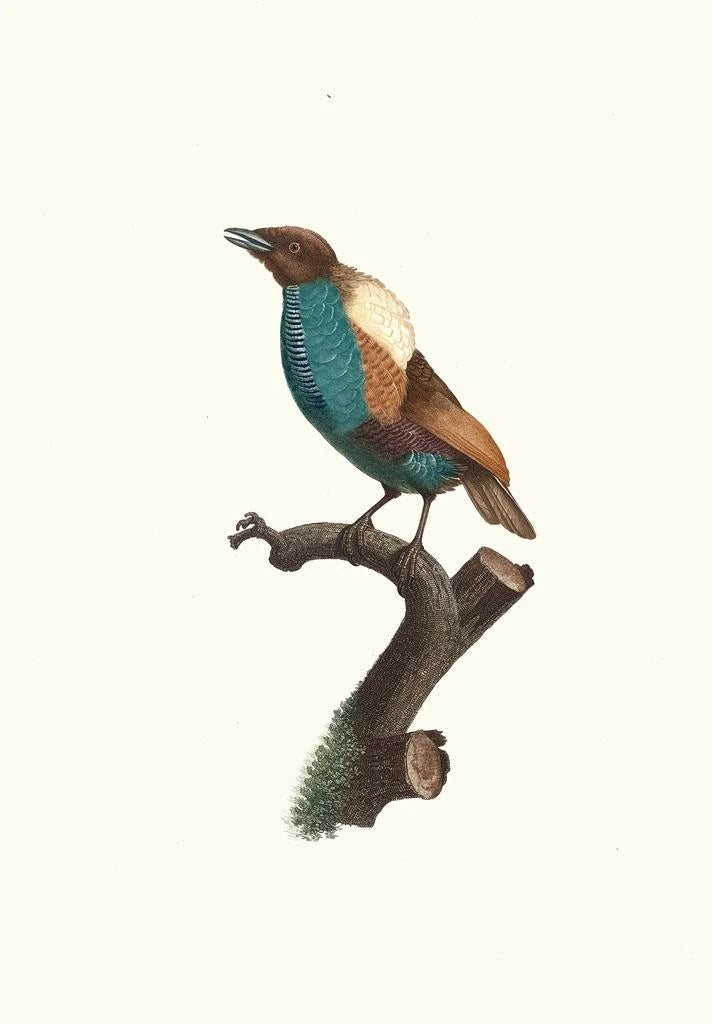 Variété du Magnifique : eine ornithologische Pracht Der kunstdruck der Variété du Magnifique von Jacques Barraband ist ein wahres Meisterwerk, das die Majestät der Vögel hervorhebt. Dieses Werk, lebendig in Farben, zeigt einen Vogel mit schillernden Federn, mit Nuancen von Rot, Blau und Gold, die den Blick fesseln. Die Aquarelltechnik, die mit großer Feinfühligkeit angewendet wird, ermöglicht es, die Textur der Federn und die Leuchtkraft der Farben wiederzugeben. Die Atmosphäre, die von diesem Gemälde ausgeht, ist sowohl dynamisch als auch harmonisch und entführt den Betrachter in eine Welt, in der natürliche Schönheit herrscht. Jacques Barraband: ein Künstler im Dienste der Natur Jacques Barraband, aktiv im frühen 19. Jahrhundert, ist eine ikonische Figur der naturwissenschaftlichen Kunst. Seine Werke, oft für wissenschaftliche Werke geschaffen, zeugen von seinem Engagement, die Fauna mit unvergleichlicher Präzision darzustellen. Barraband wurde durch die Erkundungen seiner Zeit beeinflusst und integrierte exotische Elemente in seine Arbeit. Seine Leidenschaft für Vögel hat ihn zu einem respektierten Künstler gemacht, dessen Kreationen weiterhin Natur- und Kunstliebhaber weltweit faszinieren. Ein dekoratives Kunstwerk mit vielfältigen Vorzügen Der kunstdruck der Variété du Magnifique ist ein dekoratives Element, das jedem Raum eine elegante Note verleiht, sei es im Wohnzimmer, im Büro oder im Schlafzimmer. Seine Druckqualität garantiert eine bemerkenswerte Farbtreue und Detailgenauigkeit des Originalwerks, was einen ästhetisch ansprechenden Reiz bietet. Mit diesem Bild integrieren Sie ein Dekorationselement, das die Schönheit der Natur feiert und gleichzeitig eine exotische Note in Ihren Wohnraum bringt. Es ist eine Einladung zur Kontemplation und Flucht, ideal, um Ihre Inneneinrichtung zu bereichern.