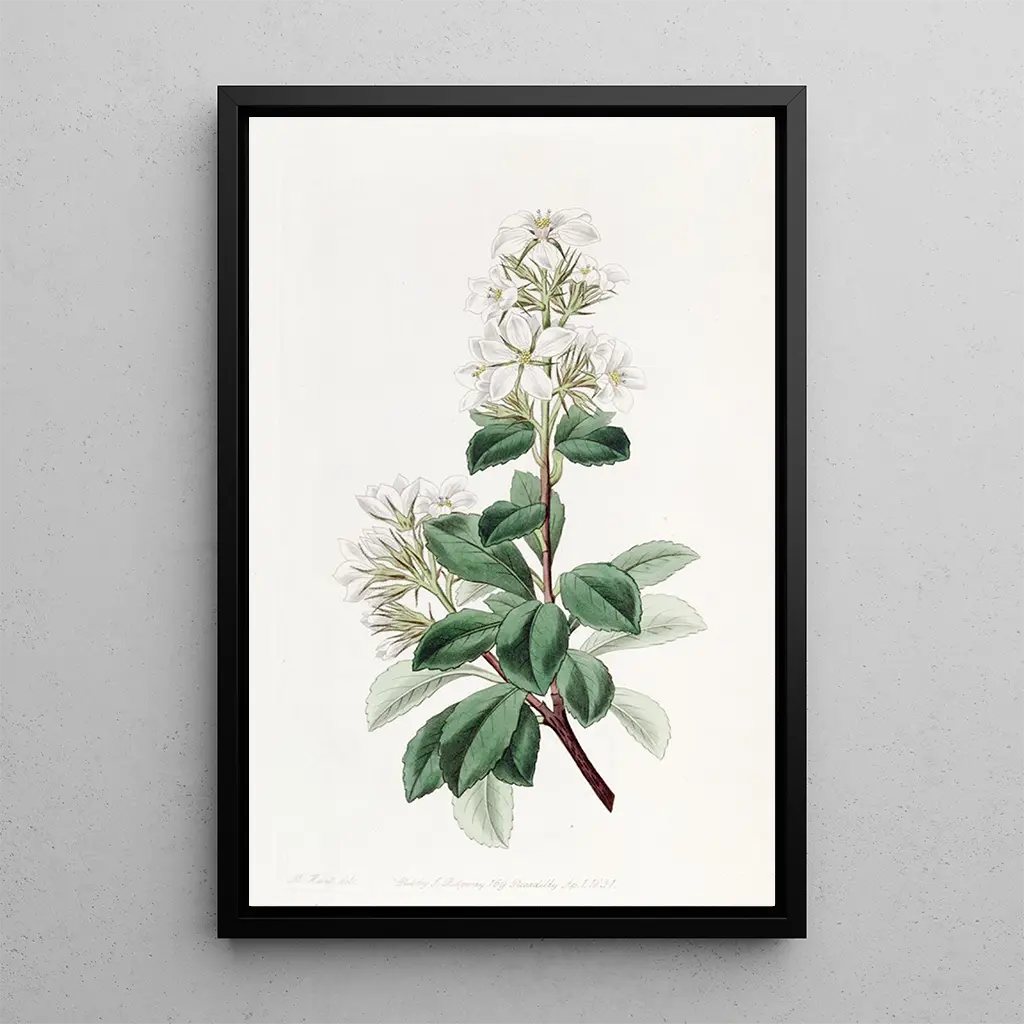 Raphiolepis rot : Eine Explosion natürlicher Farben Die kunstdruck Raphiolepis rot entführt uns in eine lebendige Welt, in der die Natur mit Brillanz zum Ausdruck kommt. Die Nuancen von Rot, Grün und Weiß verschmelzen harmonisch und schaffen eine Atmosphäre, die sowohl lebendig als auch beruhigend ist. Die Aquarelltechnik, die vom Künstler verwendet wird, ermöglicht es, die Zartheit der Blütenblätter und die Textur der Blätter mit beeindruckender Leichtigkeit einzufangen. Jedes Detail ist sorgfältig wiedergegeben und lädt den Betrachter ein, die vergängliche Schönheit dieser Blume zu schätzen. Dieses Werk ist eine Ode an die Natur, eine Feier der Flora, die uns umgibt und die es wert ist, betrachtet zu werden. Sydenham Edwards: Ein Pionier der künstlerischen Botanik Sydenham Edwards, aktiv im frühen 19. Jahrhundert, ist bekannt für seine zentrale Rolle in der botanischen Illustration. Beeinflusst von den wissenschaftlichen Entdeckungen seiner Zeit, verstand er es, wissenschaftliche Präzision und Ästhetik in seinen Werken zu vereinen. Seine Illustrationen, zu denen auch die kunstdruck Raphiolepis rot gehört, zeugen von tiefem Respekt vor der Natur und dem Wunsch, sie künstlerisch zu dokumentieren. Edwards arbeitete mit renommierten Botanikern zusammen und trug so zur Verbreitung botanischer Kenntnisse durch Kunst bei. Sein Erbe besteht weiter und inspiriert noch heute Künstler und Pflanzenliebhaber. Eine dekorative Anschaffung mit vielfältigen Vorzügen Der kunstdruck Raphiolepis rot ist ein ideales Dekorationsstück, um Ihr Zuhause zu verschönern. Ob im Wohnzimmer, im Büro oder im Schlafzimmer – dieses Bild bringt Frische und Vitalität in jeden Raum. Die Druckqualität garantiert eine treue Wiedergabe der Farben und Details des Originalwerks und bietet gleichzeitig einen unbestreitbaren ästhetischen Reiz. Dieses Leinwandbild aufzuhängen bedeutet, die Schönheit der Natur in Ihren Lebensraum zu holen und eine warme, einladende Atmosphäre zu schaffen. Dieses Werk ist nicht nur eine dekorative Wahl, sondern auch eine Hommage an die florale Pracht.