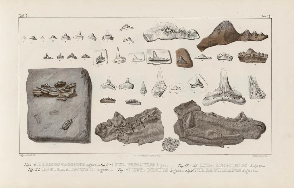 Reproduktion Forschungen an fossilen Fischen, Pl. 303: eine Reise in die marine Vergangenheit Die Reproduktion des Kunstwerks Forschungen an fossilen Fischen, Pl. 303 entführt uns in eine faszinierende Wasserwelt. Die akribischen Details der Fossilien, mit wissenschaftlicher Präzision wiedergegeben, offenbaren eine Palette erdiger Farben und zarte Nuancen, die die Schönheit der verschwundenen Meereskreaturen widerspiegeln. Die von Louis Agassiz verwendete Gravurtechnik betont ein harmonisches Gleichgewicht zwischen Kunst und Wissenschaft und schafft eine sowohl kontemplative als auch lehrreiche Atmosphäre. Jedes Element dieses Kunstwerks lädt den Betrachter ein, die Geheimnisse der Evolution zu erforschen und die Vielfalt vergangener Biodiversität zu schätzen. Louis Agassiz: Pionier der Paläontologie und der Naturgeschichte Louis Agassiz, schweizerischer Naturforscher und Geologe des 19. Jahrhunderts, spielte eine entscheidende Rolle bei der Weiterentwicklung der Naturwissenschaften. Beeinflusst von den Ideen seiner Zeit, widmete er sein Leben der Untersuchung von Fossilien und der Klassifikation der Arten. Seine strenge Methode und seine präzisen Beobachtungen ermöglichten ein besseres Verständnis der Geschichte des Lebens auf der Erde. Agassiz ist auch bekannt für seine Arbeiten über Gletscher und deren Einfluss auf das Klima, was seine multidisziplinäre Herangehensweise unterstreicht. Diese Reproduktion von Forschungen an fossilen Fischen, Pl. 303, veranschaulicht perfekt sein wissenschaftliches und künstlerisches Erbe und markiert eine Epoche, in der Kunst und Wissenschaft verschmolzen. Eine dekorative Anschaffung mit vielfältigen Vorteilen Diese Reproduktion des Gemäldes Forschungen an fossilen Fischen, Pl. 303 ist eine ideale Wahl für alle, die ihre Inneneinrichtung bereichern möchten. Ob im Wohnzimmer, im Büro oder im Schlafzimmer – dieses Kunstwerk verleiht jedem Raum eine Note von Eleganz und Neugier. Die Druckqualität garantiert eine bemerkenswerte Treue zu den Originaldetails, sodass jede Nuance und jeder Strich genossen werden kann. Die ästhetische Anziehungskraft dieses Kunstwerks liegt in seiner einzigartigen Mischung aus Wissenschaft und Kunst, wodurch diese Reproduktion zu einem echten Gesprächsthema wird. Durch die Integration dieses Stücks in Ihren Raum laden Sie nicht nur die visuelle Schönheit ein, sondern auch eine Reflexion über die Naturgeschichte.