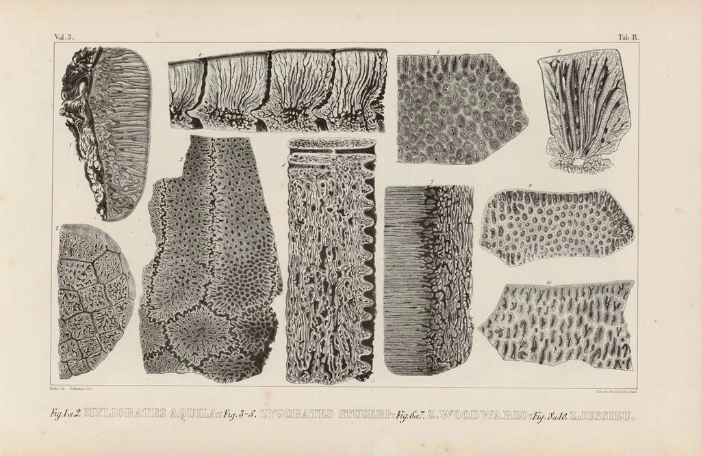 Reproduktion von "Recherches sur les poissons fossiles Pl271" ist eine wahre Einladung, die Tiefen der natürlichen Geschichte zu erkunden. Dieses Werk, reich an Details, hebt die Vielfalt der ausgestorbenen Meeresarten hervor und fängt die Essenz des einstigen Wasserlebens ein. Die Illustrationen, zart und präzise, zeigen eine Palette erdiger Farben und Texturen, die fast fühlbar erscheinen. Jeder Fisch, im Zeitgeist eingefroren, erzählt eine faszinierende Geschichte und entführt uns in eine Welt, in der diese Kreaturen die Meere beherrschten. Louis Agassiz: Pionier der Paläontologie und der Fischforschung Louis Agassiz, schweizerischer Wissenschaftler des 19. Jahrhunderts, gilt als einer der Pioniere der Paläontologie. Seine gründlichen Forschungen zu fossilen Fischen revolutionierten unser Verständnis der Evolution mariner Arten. Durch die Kombination aus genauer Beobachtung und wissenschaftlicher Strenge konnte Agassiz Klassifikationen erstellen, die noch heute Gültigkeit besitzen. Seine Arbeit bereicherte nicht nur das Gebiet der Biologie, sondern weckte auch ein wachsendes Interesse an der natürlichen Geschichte und machte ihn zu einer bedeutenden Figur seiner Zeit. Eine dekorative Anschaffung mit vielfältigen Vorzügen Die reproduction von "Recherches sur les poissons fossiles Pl271" ist eine faszinierende Ergänzung Ihrer Innendekoration. Ob im Büro, in einer Bibliothek oder in einem wissenschaftlich inspirierten Raum – dieses Kunstwerk bringt eine Note von Gelehrsamkeit und Neugierde. Die Druckqualität sorgt für eine bemerkenswerte Treue zu den Originalillustrationen und bietet gleichzeitig eine visuelle Attraktivität, die Gespräche anregen wird. Mit diesem Werk in Ihrem Raum feiern Sie nicht nur das wissenschaftliche Erbe von Louis Agassiz, sondern auch die Bewunderung, die die Natur hervorruft.