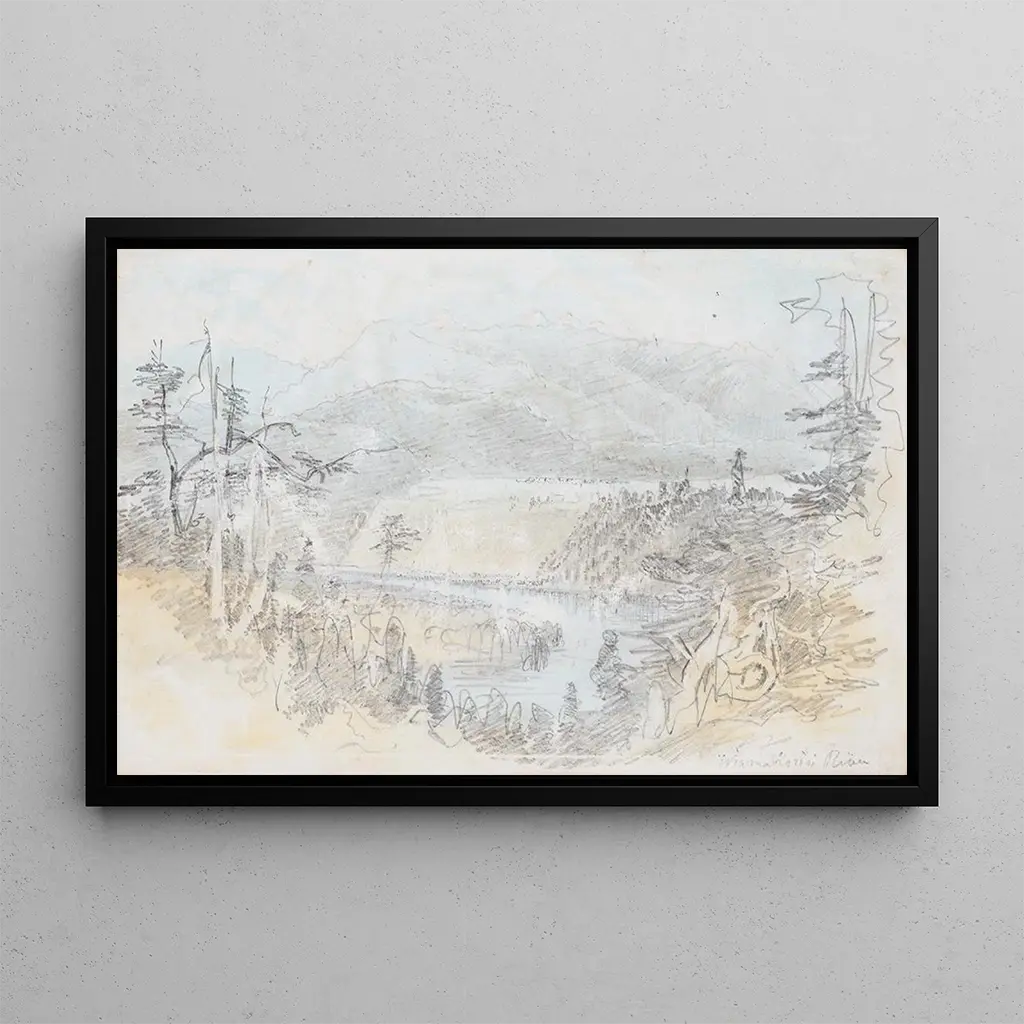 Die kunstdruck der Rivière Waimakariri von Nicholas Chevalier entführt den Betrachter in eine idyllische Landschaft. Die Nuancen von Blau und Grün verschmelzen harmonisch und erinnern an die Frische des Wassers und das umliegende Grün. Die Technik des Künstlers, zugleich präzise und zart, fängt das Licht auf eine Weise ein, die der Szene Leben einhaucht. Die Details der Berge im Hintergrund sowie die Sanftheit des Himmels schaffen eine ruhige Atmosphäre, die zur Kontemplation einlädt. Dieses Gemälde lädt zu einer visuellen Flucht ein, bei der die Natur in ihrer ganzen Pracht zum Ausdruck kommt.