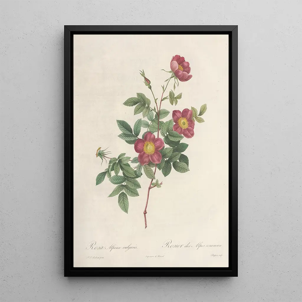 Rosa Alpina Vulgaris : eine zarte florale Symphonie Die kunstdruck von Rosa Alpina Vulgaris, einem emblematischen Werk von Pierre Joseph Redouté, ruft die zerbrechliche Schönheit der Bergblumen hervor. Mit Pastelltönen und Grüntönen zeigt dieses Leinwandbild eine alpine Rose in ihrer ganzen Pracht. Die minutösen Details der Blütenblätter, fast durchsichtig, und die Feinheit der Blätter schaffen eine Atmosphäre von Gelassenheit und Zartheit. Redouté, Meister der Botanik, gelingt es, die Essenz der Natur einzufangen und den Betrachter zu einer beruhigenden Betrachtung dieses floralen Schatzes einzuladen. Pierre Joseph Redouté: der Blumenmaler am Hof Pierre Joseph Redouté, genannt der "Raphael der Blumen", prägte das 18. Jahrhundert mit seinem außergewöhnlichen Talent in der Botanik. Ursprünglich aus Belgien stammend, zog er nach Paris, wo er zum offiziellen Blumenmaler am Hof von Marie-Antoinette wurde. Beeinflusst von neoklassizistischen Strömungen verbindet Redouté wissenschaftliche Präzision mit künstlerischer Sensibilität, wodurch seine Werke Referenzen in der floralen Darstellung sind. Seine Arbeit hat nicht nur die Kunst der Botanik bereichert, sondern auch Generationen von Künstlern und Wissenschaftlern beeinflusst und sein Erbe in der Kunstgeschichte gefestigt. Eine dekorative Anschaffung mit vielfältigen Vorzügen Der kunstdruck von Rosa Alpina Vulgaris ist eine ideale dekorative Wahl für verschiedene Räume, sei es in einem eleganten Wohnzimmer, einem inspirierenden Büro oder einem beruhigenden Schlafzimmer. Seine Druckqualität und Treue zu den Originaldetails machen dieses Leinwandbild zu einem wahren visuellen Juwel. Die ästhetische Anziehungskraft dieses Werks liegt in seiner Fähigkeit, einen Hauch von Natur und Frische in Ihr Zuhause zu bringen, während es die Meisterschaft eines anerkannten Künstlers widerspiegelt. Durch die Integration dieses kunstdrucks in Ihre Dekoration verleihen Sie Ihrem Raum eine ruhige und raffinierte Atmosphäre.