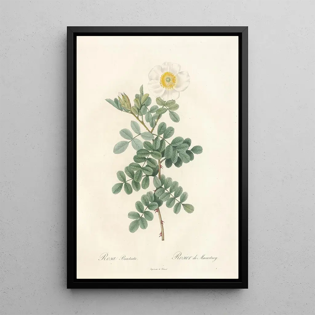 Die Wahl einer Reproduktion von Rosa Bracteata ist eine Entscheidung für ein dekoratives Stück, das Ihrem Interieur eine elegante Note verleiht. Ob im Wohnzimmer, im Büro oder im Schlafzimmer, dieses Bild fügt sich harmonisch in verschiedene Einrichtungsstile ein, vom klassischen bis zum zeitgenössischen. Die Druckqualität garantiert eine Treue zu den Farben und Details des Originalwerks und ehrt das Genie von Redouté. Seine ästhetische Anziehungskraft und Zartheit machen es zu einer idealen Wahl für alle, die ihren Lebensraum mit einem Hauch von Natur und zeitloser Schönheit bereichern möchten.