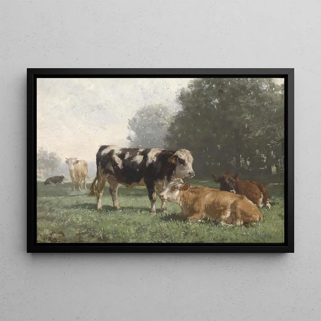 Weidevieh in Ruhe beim Weiden: eine idyllische Ruhe „Weidevieh in Ruhe beim Weiden“ ist ein Kunstdruck, der die Ruhe des Landlebens einfängt. Friedrich Voltz entführt uns mit diesem Gemälde in eine ländliche Szenerie, in der die Kühe friedlich unter einem hellen Himmel grasen. Die Nuancen von Grün und Blau verschmelzen harmonisch und vermitteln die Frische der Wiesen. Die Technik von Voltz, gekennzeichnet durch zarte Pinselstriche, erweckt diese idyllische Szene zum Leben und schafft eine Atmosphäre von Ruhe und Gelassenheit. Dieser Kunstdruck des Gemäldes „Weidevieh in Ruhe beim Weiden“ ist eine Ode an die Natur und die Einfachheit des Landlebens. Friedrich Voltz: ein Meister der ländlichen Landschaft Friedrich Voltz, ein deutscher Maler des 19. Jahrhunderts, ist bekannt für seine Darstellungen des Landlebens und der natürlichen Landschaften. Beeinflusst vom Romantizismus, konnte er die Schönheit alltäglicher Szenen mit besonderer Sensibilität einfangen. Voltz widmete seine Karriere der Unsterblichmachung des Lebens der Bauern und Tiere, wodurch seine Werke zu wertvollen Zeugnissen seiner Zeit wurden. Seine Fähigkeit, Emotionen durch einfache, aber ausdrucksstarke Landschaften zu vermitteln, machte ihn zu einem respektierten Künstler. Diese Reproduktion von „Weidevieh in Ruhe beim Weiden“ unterstreicht die Bedeutung seines künstlerischen Erbes. Eine dekorative Anschaffung mit vielfältigen Vorzügen Der Kunstdruck „Weidevieh in Ruhe beim Weiden“ ist die perfekte Wahl, um Ihre Inneneinrichtung zu bereichern. Ob im Wohnzimmer, Büro oder Schlafzimmer – dieses Bild bringt einen Hauch von Natur und Ruhe in Ihren Raum. Die Druckqualität sorgt für eine bemerkenswerte Treue zu den Details und Farben des Originalwerks und fügt sich harmonisch in verschiedene Einrichtungsstile ein. Mit diesem Kunstdruck verleihen Sie Ihrem Zuhause eine beruhigende Atmosphäre, die zur Entspannung und Flucht einlädt.