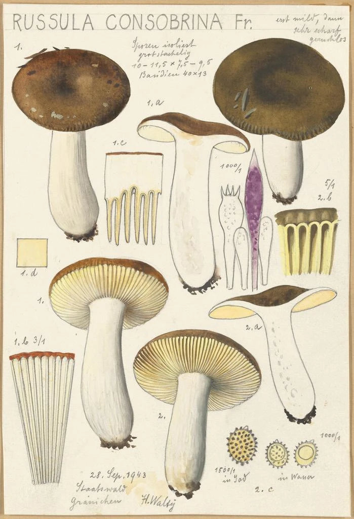 Hans Baldung, auch bekannt als Hans Baldung Grien, ist eine der ikonischen figuren der deutschen renaissance. Aktiv zu beginn des 16. Jahrhunderts, wurde er von dürers werk beeinflusst und entwickelte einen einzigartigen stil, der realismus und fantastische elemente verbindet. Baldung ist vor allem bekannt für seine darstellungen der natur und mythologischer themen, die eine besondere empfindsamkeit gegenüber der natürlichen welt offenbaren. Seine fähigkeit, die vergängliche schönheit der pilze einzufangen, wie bei Russula consobrina, zeugt von seiner kunstfertigkeit, kunst und wissenschaftliche beobachtung zu vereinen, und macht ihn zu einem unverzichtbaren künstler seiner zeit.