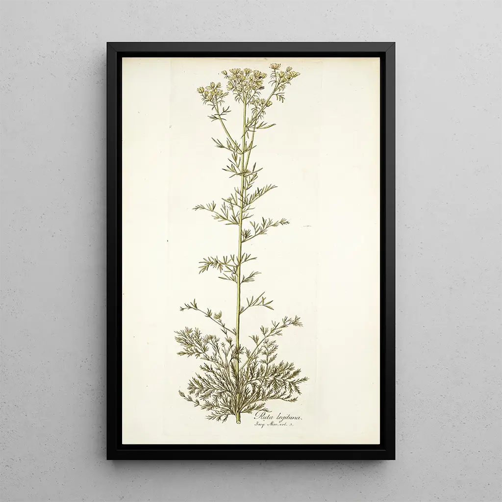 Der kunstdruck von Ruta legitima ist ein dekoratives Stück, das Ihr Zuhause verschönern und gleichzeitig einen Hauch Natur bringen wird. Ob im Wohnzimmer, im Büro oder im Schlafzimmer, dieses Bild fügt sich harmonisch in verschiedene Einrichtungsstile ein. Seine Druckqualität und seine Treue zum Originalwerk garantieren eine fesselnde visuelle Darstellung. Mit dieser leinwand entscheiden Sie sich für eine Dekoration, die sowohl die Schönheit der Botanik als auch die Geschichte der Heilpflanzen evoziert. Es ist ein Werk, das zur Betrachtung und zur Ruhe einlädt und so Ihren Lebensraum bereichert.