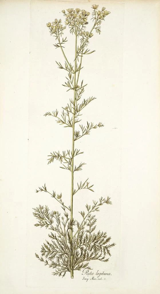 Nikolaus Joseph Freiherr von Jacquin, geboren 1727, gilt als einer der Pioniere der botanischen illustration im 18. Jahrhundert. Seine Reisen in Amerika und seine vertieften Studien exotischer Pflanzen bereicherten sein Wissen und sein Werk. Beeinflusst von den wissenschaftlichen Strömungen seiner Zeit, konnte Jacquin Rigorosität und Ästhetik verbinden und schuf Illustrationen, die sowohl Kunstwerke als auch wertvolle wissenschaftliche Dokumente sind. Ruta legitima, wie auch andere seiner Kreationen, zeugt von seinem Engagement, das Wissen über Pflanzen und ihre Bedeutung in der traditionellen Medizin zu fördern.