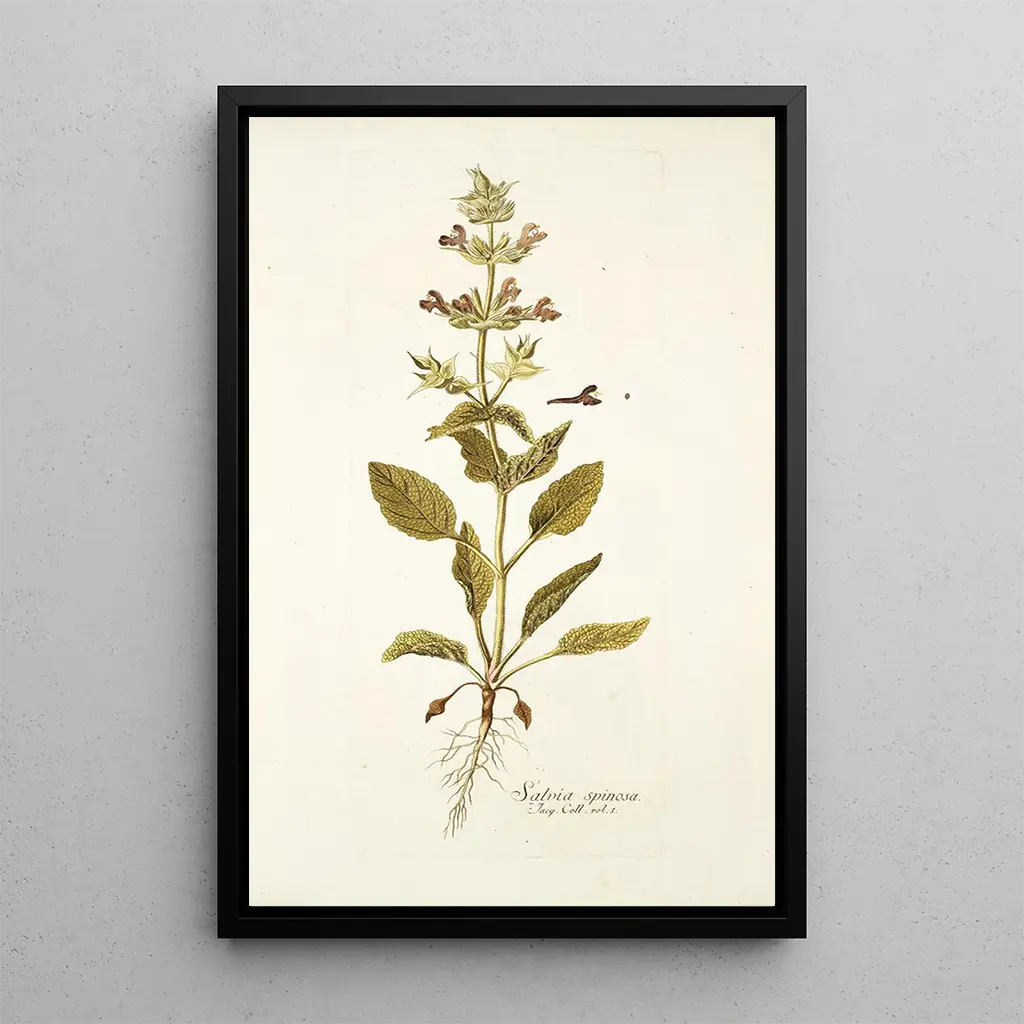 Der kunstdruck von Salvia spinosa ist ein dekoratives Stück, das jeden Raum bereichern kann, sei es ein Wohnzimmer, ein Büro oder ein Schlafzimmer. Die Druckqualität und die Farbtreue machen ihn zur idealen Wahl für alle, die ihrer Einrichtung einen Hauch von Natur verleihen möchten. Die ästhetische Anziehungskraft dieses Leinwandbildes liegt im Gleichgewicht zwischen Kunst und Wissenschaft und bietet einen faszinierenden Gesprächsstoff für alle, die es bewundern. Mit diesem Werk entscheiden Sie sich für eine elegante und zugleich lehrreiche Dekoration, perfekt für Botaniker und Kunstliebhaber.