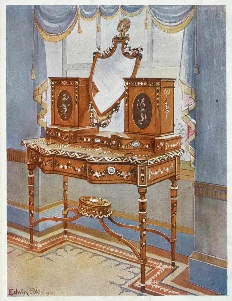 Kunstdruck | Satin-Holzfrisiertisch mit Medaillons - Edwin Foley