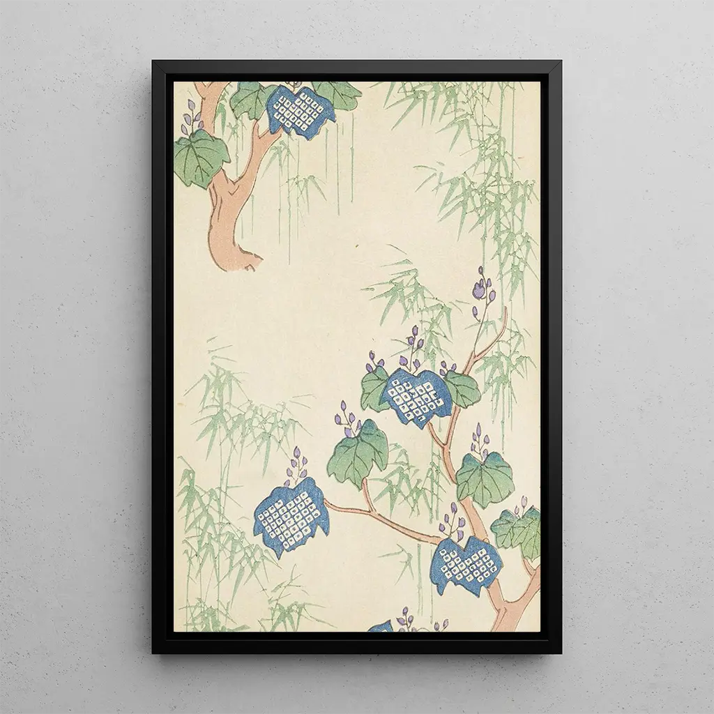 Die reproduction von Bijutsukai Pl184 ist ein faszinierendes Kunstwerk, das zur Flucht einlädt. Die lebendigen Farben, die von tiefroten bis zu beruhigenden blauen Tönen reichen, verschmelzen mit bemerkenswerter Feinfühligkeit. Die Technik des Ukiyo-e, typisch für die japanische Kunst, verleiht diesem Leinwand eine Atmosphäre, die sowohl ruhig als auch dynamisch ist. Die floralen Motive und natürlichen Elemente harmonieren, um eine ausgewogene Komposition zu schaffen, bei der jedes Detail eine Geschichte zu erzählen scheint. Das Werk ruft eine sanfte Melancholie hervor und feiert gleichzeitig die vergängliche Schönheit der Natur.