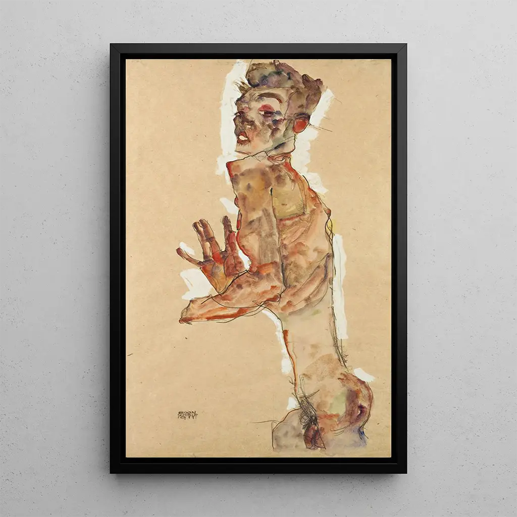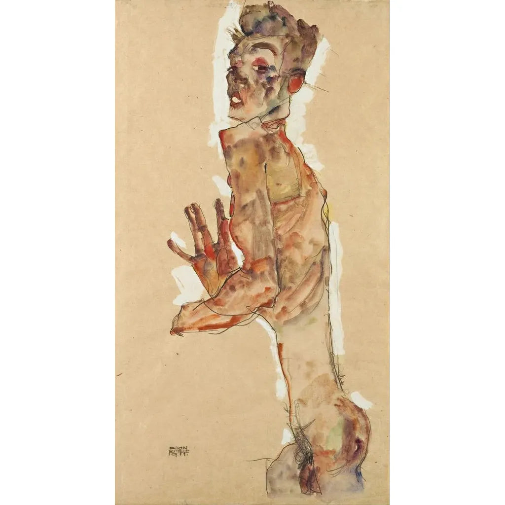 Egon Schiele, geboren 1890, zählt zu den einflussreichsten Künstlern des frühen 20. Jahrhunderts und ist bekannt für seine zentrale Rolle in der österreichischen expressionistischen Bewegung. In einem künstlerischen Umfeld aufgewachsen, wurde er stark von Gustav Klimt und dem secessionistischen Stil beeinflusst. Schiele erforschte Themen wie Sexualität, Tod und Identität in seinen Werken, oft unter Verwendung von Selbstporträts, um seine inneren Kämpfe auszudrücken. Das Autoportrait aux doigts écartés, geschaffen im Jahr 1910, veranschaulicht perfekt diese Suche nach Authentizität und Selbstverständnis.