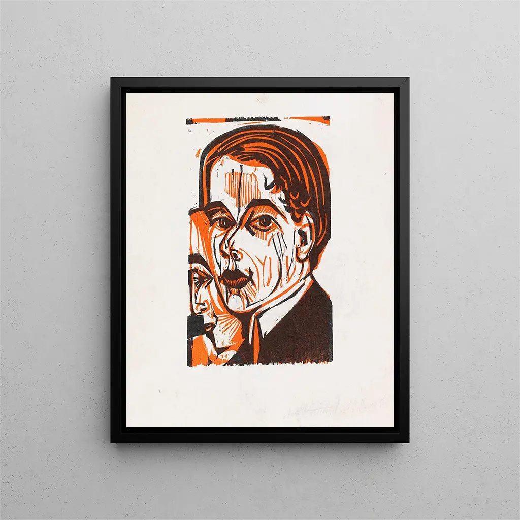 Das Selbstporträt in Profil einer Frau von Ernst Ludwig Kirchner ist ein Werk, das den Betrachter in die Intimität eines gequälten Künstlers eintauchen lässt und sowohl seine Sensibilität als auch seine einzigartige Weltsicht offenbart. Erschaffen zu Beginn des 20. Jahrhunderts, verkörpert dieses ikonische Stück den Geist der expressionistischen Bewegung, bei der Farbe und Form verwendet werden, um tiefe Emotionen auszudrücken. Kirchner lädt uns durch dieses Porträt ein, nicht nur sein Bild, sondern auch die Seele einer sich im Wandel befindlichen Epoche zu betrachten. Die Kunstdruck dieses Werks ermöglicht es, die Vielfalt seiner Nuancen und die Tiefe seiner Botschaft zu schätzen, während er gleichzeitig ein Fenster in das innere Universum des Künstlers öffnet.