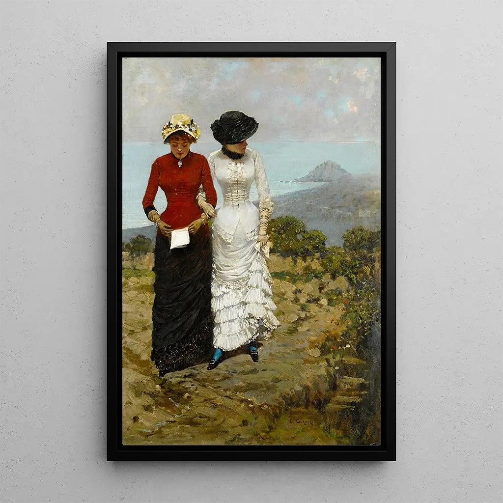 Approchant le rendez-vous : eine Szene voller Zärtlichkeit In "Approchant le rendez-vous" fängt Ernest Giroux einen flüchtigen Moment ein, eine Begegnung voller Versprechen. Die Komposition hebt eine junge Frau hervor, die in einem zarten Kleid gekleidet ist und mit Anmut auf einen Treffpunkt zusteuert. Die Pastellfarben, die sanfte Töne von Rosa und Blau mischen, schaffen eine romantische und träumerische Atmosphäre. Die Technik von Giroux, die Realismus und Impressionismus verbindet, erweckt diese Szene zum Leben und macht die Emotionen fast greifbar. Die detaillierten Blumen und das umgebende Laubwerk verleihen eine poetische Note und laden den Betrachter ein, in diesen schwebe Moment einzutauchen. Ernest Giroux : ein Maler im Herzen der romantischen Bewegung Ernest Giroux, aktiv im 19. Jahrhundert, ist ein bedeutender Vertreter der französischen romantischen Bewegung. Beeinflusst von seinen Zeitgenossen, entwickelt er einen Stil, der Emotionen und Sensibilität in den Vordergrund stellt und sich von den akademischen Konventionen seiner Zeit absetzt. Seine Werke, oft inspiriert von Natur und menschlichen Beziehungen, zeugen von einer Suche nach Authentizität und Schönheit. Giroux hat das Wesen seiner Epoche eingefangen, geprägt von einer Suche nach Individualität und Gefühlen. Seine Gemälde, wie "Approchant le rendez-vous", sind Reflexionen des Alltagslebens, durchdrungen von einer emotionalen Tiefe, die auch heute noch die Zuschauer berührt. Eine dekorative kunstdruck mit vielfältigen Vorzügen Der kunstdruck des Gemäldes "Approchant le rendez-vous" ist ein dekoratives Stück, das jeden Raum verschönern kann, sei es ein Wohnzimmer, ein Büro oder ein Schlafzimmer. Seine Druckqualität und die Treue zu den Originalfarben machen dieses Leinwandbild zur idealen Wahl für Liebhaber romantischer kunst. Die ästhetische Anziehungskraft dieses Werks liegt in seiner Fähigkeit, Emotionen hervorzurufen und eine warme Atmosphäre zu schaffen. Durch die Integration dieses kunstdrucks in Ihr Zuhause verleihen Sie Ihrem Raum einen Hauch von Raffinesse und Poesie und feiern gleichzeitig das künstlerische Erbe von Ernest Giroux.