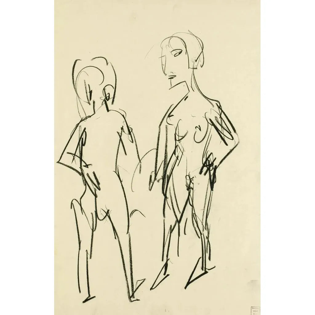 Reproduktion | Figurenskizze zweier Nackter - Albert Müller