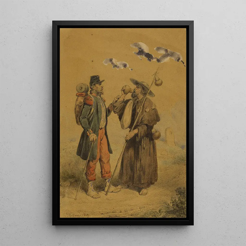 Soldat, der einem Pilger Wasser reicht: eine Geste des Mitgefühls In dem Werk "Soldat, der einem Pilger Wasser reicht" von Hippolyte Bellangé entfaltet sich vor unseren Augen ein Moment der Zärtlichkeit und Menschlichkeit. Die Szene, reich an Details, zeigt einen Soldaten im Uniform, der einem müden Pilger Wasser anbietet. Die warmen, erdigen Farben vermitteln eine Atmosphäre von Wärme und Solidarität, während die Technik von Bellangé, die Realismus und Romantik verbindet, dieser emotionalen Interaktion Leben einhaucht. Jedes Element der Komposition, von den Ausdrücken bis zu den Haltungen, trägt dazu bei, eine kraftvolle visuelle Erzählung zu schaffen, die das Herz berührt. Hippolyte Bellangé: ein engagierter Künstler des 19. Jahrhunderts Hippolyte Bellangé, französischer Maler des 19. Jahrhunderts, ist bekannt für seine Werke, die Geschichte und Emotionen verbinden. Beeinflusst vom Romantizismus, konnte er bewegende Momente des Lebens einfangen, oft inspiriert von militärischen und historischen Themen. Seine Karriere, geprägt von einer ständigen Suche nach emotionaler Wahrheit, ermöglichte es ihm, sich in der Kunstwelt einen Namen zu machen. "Soldat, der einem Pilger Wasser reicht" ist ein emblematisches Beispiel seines Stils und zeigt sein Engagement für Themen, die menschliches Mitgefühl hervorheben, selbst in schwierigen Kontexten. Eine dekorative kunstdruck mit vielfältigen Vorzügen Der kunstdruck von "Soldat, der einem Pilger Wasser reicht" ist eine ideale Wahl für diejenigen, die ihr Interieur mit einem bedeutungsvollen Werk bereichern möchten. Ob im Wohnzimmer, Wartezimmer oder Büro, dieses Bild verleiht Ihrer Dekoration eine menschliche und warme Note. Die Qualität des kunstdrucks garantiert eine detailgetreue Wiedergabe der Farben und Details, sodass die Tiefe des Originalwerks spürbar wird. Mit seiner ästhetischen Anziehungskraft und seiner bewegenden Botschaft wird dieses Leinwandbild zu einem echten dekorativen Highlight, das Bewunderung und Nachdenken bei Ihren Gästen hervorruft.