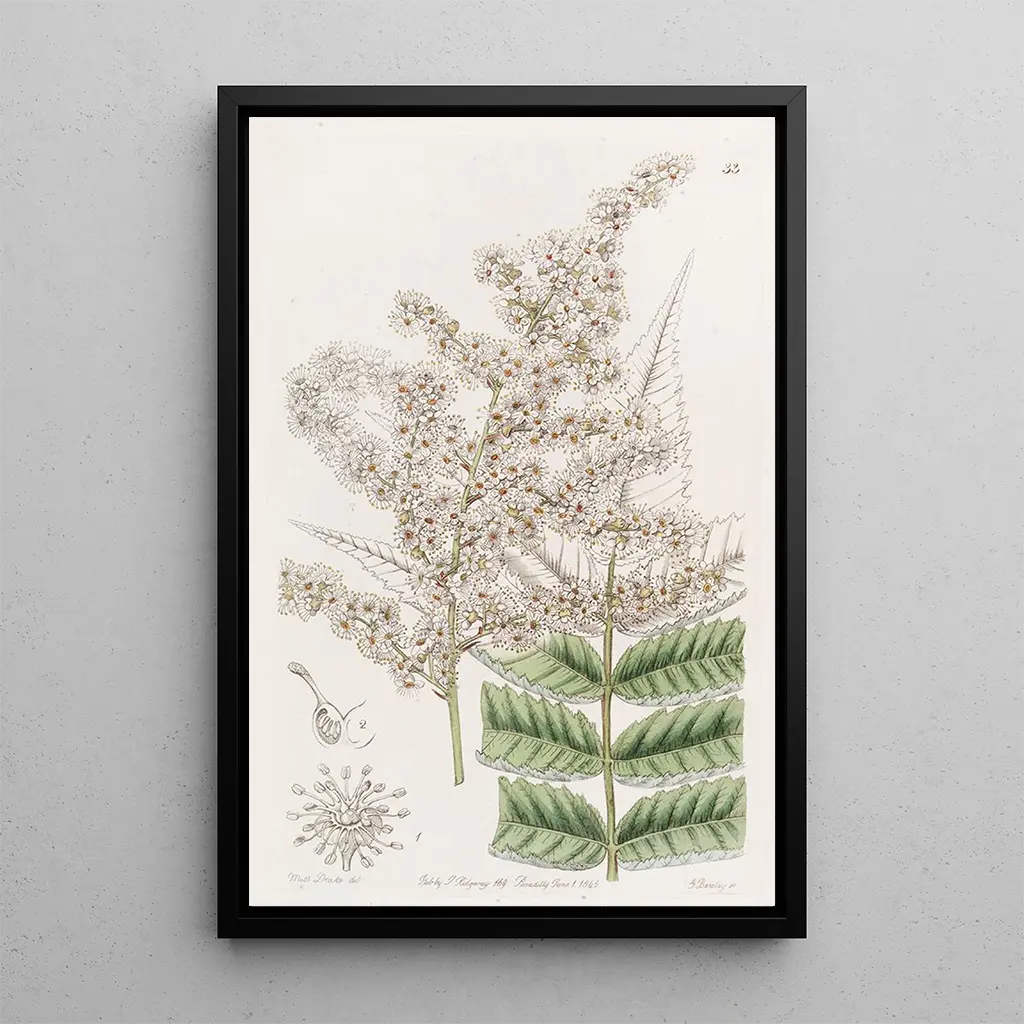Die kunstdruck der Spirée du Dr Lindley, eines Werks von Sydenham Edwards, ist eine wahre Ode an die Schönheit der Blumen. Die pastellfarbenen Nuancen der Blütenblätter, die vom reinen Weiß bis zum zarten Rosa reichen, verschmelzen harmonisch mit zarten grünen Blättern. Dieses Gemälde, das mit einer raffinierten Aquarelltechnik gefertigt wurde, strahlt eine sanfte und beruhigende Atmosphäre aus und erinnert an die üppigen Gärten der viktorianischen Epoche. Jedes Detail ist sorgfältig wiedergegeben, sodass der Betrachter die Feinheit der Natur durch die Linse der Kunst schätzen kann.