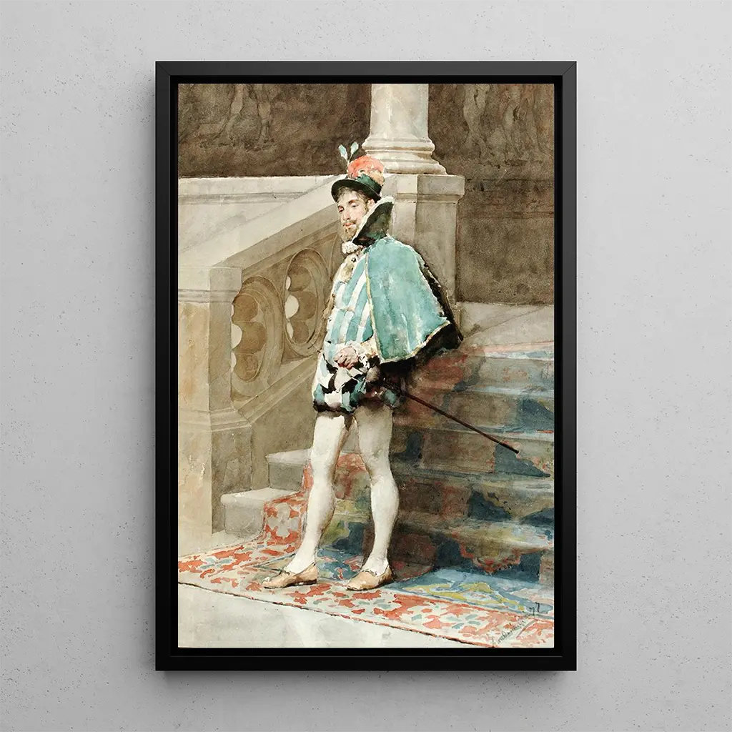 In der kunstdruck der Arbeit "Studien eines Hofmanns" taucht Carlo Randanini in die elegante und faszinierende Welt des Hofes ein. Das Gemälde zeichnet sich durch reiche und tiefe Farben aus, die den aristokratischen Charakter des Motivs unterstreichen. Die Technik von Randanini, die detaillierte Feinheiten mit Schatteneffekten verbindet, schafft eine Atmosphäre, die sowohl intim als auch feierlich ist. Der Hofmann, gekleidet in prächtige Kleidung, scheint die Aufmerksamkeit des Betrachters zu fesseln und lädt dazu ein, die Geheimnisse seiner Welt zu entdecken. Dieses Werk evoziert nicht nur äußere Schönheit, sondern auch die Komplexität der sozialen Beziehungen der Epoche.