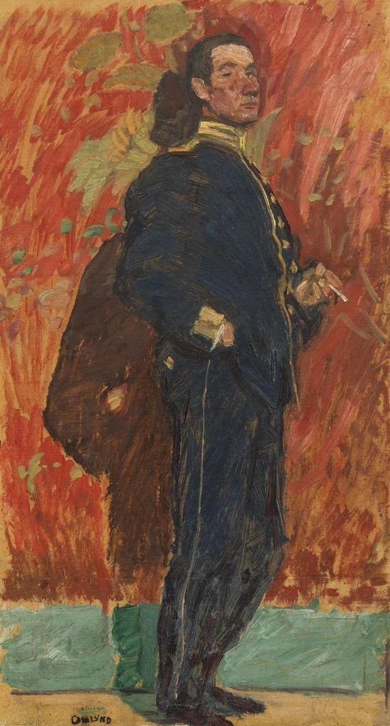 „Studienkopf des jüngeren Bruders“ ist ein fesselndes Werk von Helmer Osslund, das die psychologische Tiefe seines Motivs offenbart. Der junge Mann, gekleidet in Uniform, wird mit einer Intensität dargestellt, die sofort die Aufmerksamkeit auf sich zieht. Die Nuancen von Blau und Grau dominieren die Palette und schaffen eine Atmosphäre, die sowohl feierlich als auch introspektiv ist. Die Technik des Künstlers, die geschickt Realismus mit einem impressionistischen Touch verbindet, ermöglicht es, die Emotionen der Figur zu spüren, als könnte man ihre Gedanken und Träume wahrnehmen. Dieses Portrait ist ein wahres Fenster zur Seele des jüngeren Bruders und lädt den Betrachter ein, über seine Geschichte nachzudenken.