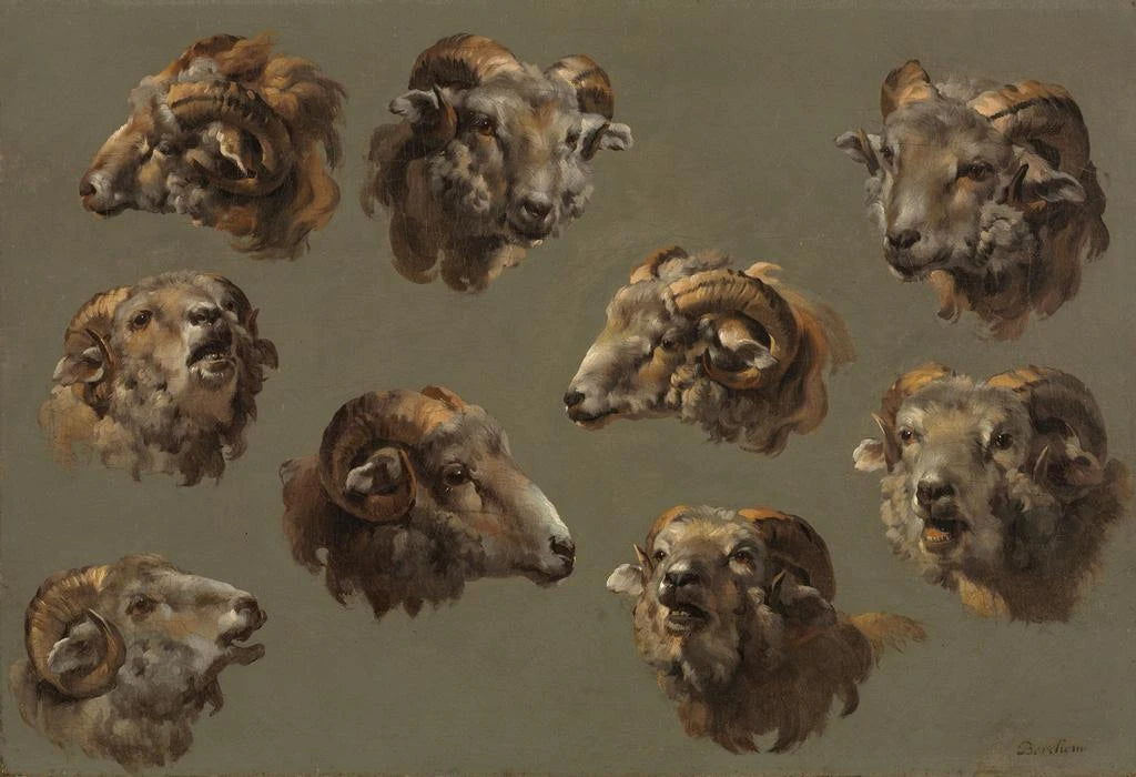 Die Tierkunst hat stets einen bedeutenden Platz in der Kunstgeschichte eingenommen, und die Studien von Widderköpfen sind ein perfektes Beispiel dafür. Obwohl der Künstler unbekannt bleibt, zeugt dieses Werk von einer Zeit, in der die Darstellung von Tieren sowohl ein Mittel künstlerischen Ausdrucks als auch eine wissenschaftliche Studie war. Die Künstler dieser Epoche versuchten, die Schönheit und Komplexität der Natur einzufangen, beeinflusst von Fortschritten in Zoologie und Verhaltensbeobachtung bei Tieren. Diese Studien sind nicht nur Kunstwerke, sondern auch Zeugnisse menschlichen Interesses an der natürlichen Welt.