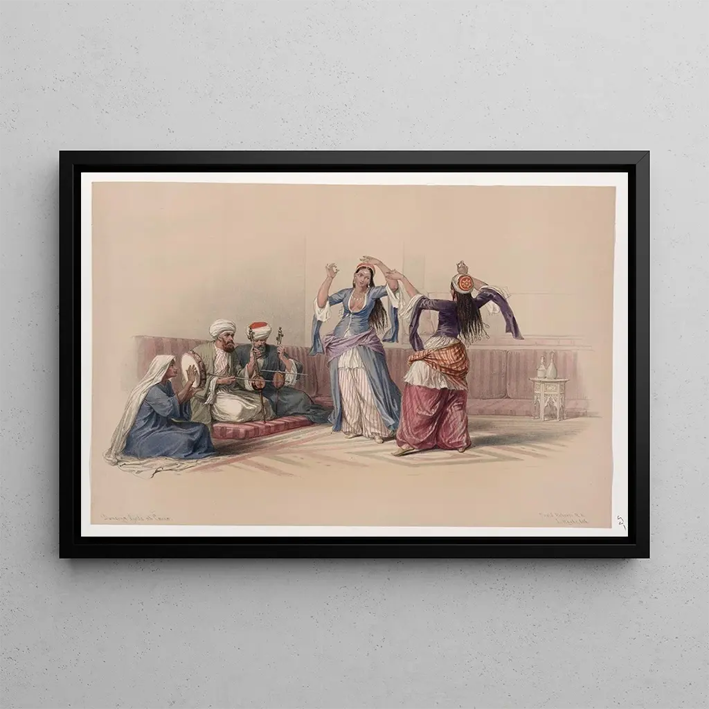 Danseinnen im Kairo: eine Feier der Anmut und Bewegung "Danseinnen im Kairo" von David Roberts ist ein Werk, das die Schönheit und Eleganz orientalischer Tänzerinnen hervorhebt und einen Moment voller Anmut und Bewegung einfängt. Die weiblichen Figuren, in farbenfrohe Kostüme gehüllt, scheinen im Rhythmus einer unsichtbaren Musik zu tanzen, während der architektonische Hintergrund die Exotik Kairos widerspiegelt. Roberts' Technik, die Realismus und Romantik verbindet, schafft eine lebendige und träumerische Atmosphäre, die den Betrachter in eine ferne und faszinierende Welt entführt. David Roberts: ein Reisender und visionärer Künstler David Roberts, ein schottischer Maler des 19. Jahrhunderts, ist bekannt für seine lebendigen Darstellungen von Landschaften und orientalischen Szenen. Als unermüdlicher Reisender durchquert er Ägypten und den Nahen Osten und lässt sich von den Kulturen und Traditionen inspirieren, denen er begegnet. Sein Stil, beeinflusst vom Romantizismus, zeichnet sich durch eine sorgfältige Detailarbeit und eine reiche Farbpalette aus. Roberts' Werke, darunter "Danseuses au Caire", sind nicht nur Zeugnisse seines künstlerischen Talents, sondern auch Fenster in eine sich wandelnde Welt, die die kollektive Fantasie seiner Zeit einfängt. Eine dekorative kunstdruck mit vielfältigen Vorzügen Der kunstdruck "Danseuses au Caire" ist eine dekorative Wahl, die Ihr Zuhause bereichern wird, sei es im Wohnzimmer, im Tanzsaal oder im Büro. Seine raffinierte Ästhetik und die lebendigen Farben verleihen eine exotische und anspruchsvolle Note. Die Qualität des kunstdrucks garantiert eine beeindruckende Treue zum Originalwerk, sodass jedes Detail genossen werden kann. Durch die Integration dieses Bildes in Ihre Dekoration fügen Sie nicht nur ein Kunstwerk hinzu, sondern auch eine Einladung zur Entdeckung und Flucht, wodurch Ihr Raum einzigartig und inspirierend wird.
