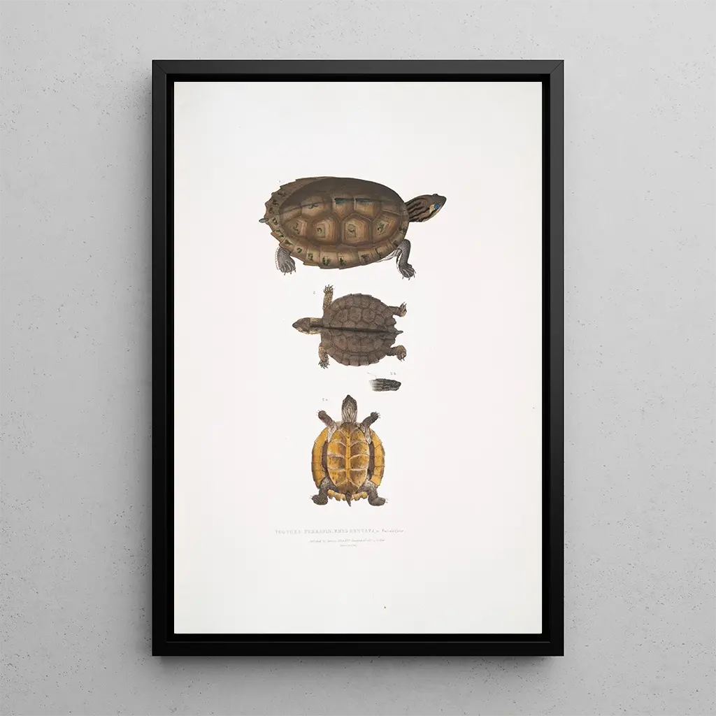 Die reproduction des Terrapin dentelé ist eine ideale dekorative Wahl für alle, die ihrem Wohnraum einen Hauch von Eleganz verleihen möchten. Ob im Wohnzimmer, im Büro oder im Schlafzimmer, dieses Leinwandbild zieht den Blick auf sich und weckt Interesse. Die Druckqualität garantiert eine außergewöhnliche Treue zu den Details des Originalwerks und bietet gleichzeitig eine unbestreitbare ästhetische Anziehungskraft. Durch die Integration dieses Bildes in Ihre Dekoration schaffen Sie eine inspirierende Umgebung, die die Schönheit der Natur und die Vielfalt der Biodiversität feiert.