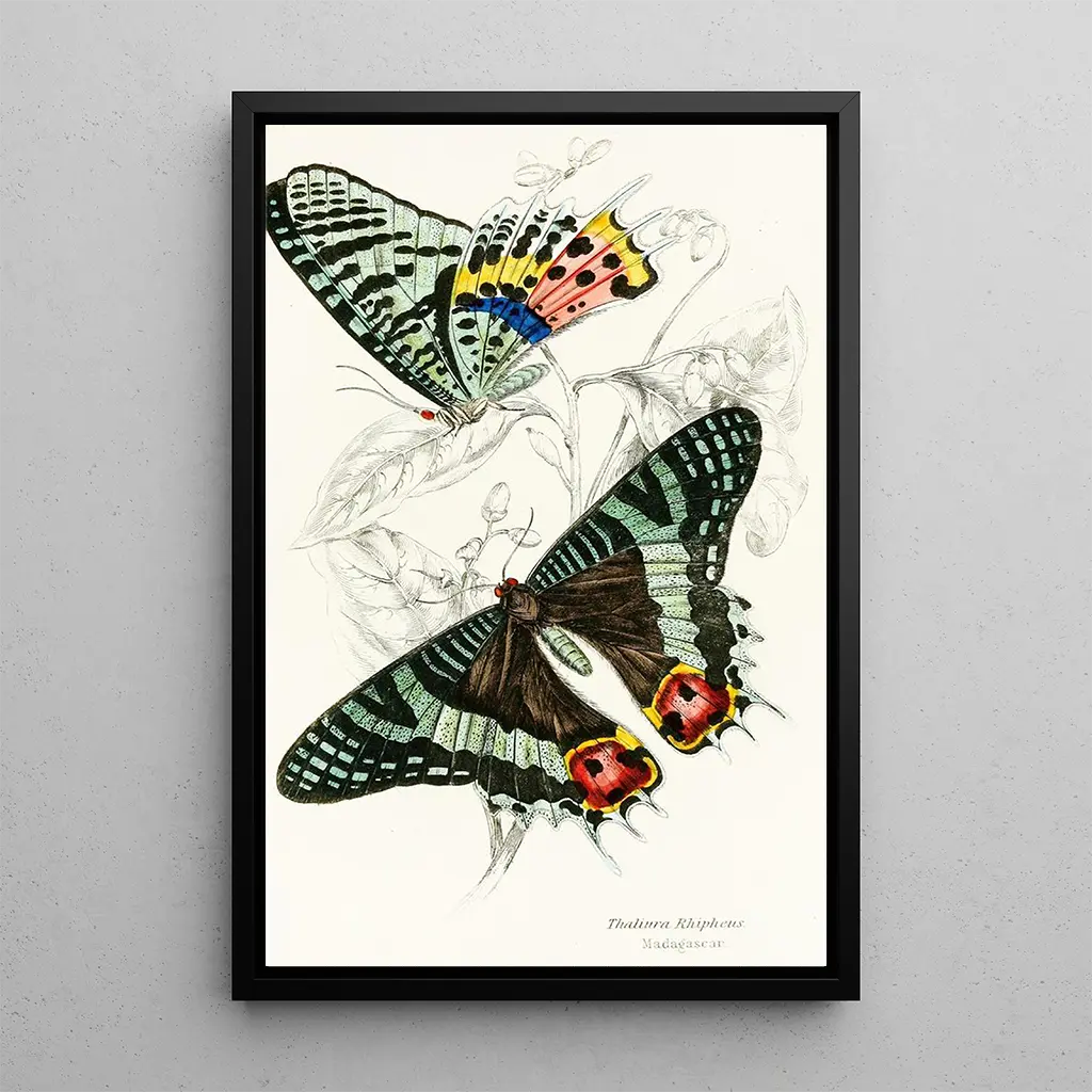 Eine reproduktion von Thaliura Rhipheus zu wählen, bedeutet, einen Farbtupfer und Leben in Ihre Inneneinrichtung zu bringen. Ob im Wohnzimmer, im Büro oder im Schlafzimmer, diese Leinwand sorgt für eine warme und einladende Atmosphäre. Die Qualität der reproduktion garantiert eine Treue zu den Details und Farben des Originalwerks, sodass Sie seine ästhetische Anziehungskraft voll genießen können. Indem Sie dieses Werk in Ihren Raum integrieren, laden Sie die Schönheit der Natur ein, bei Ihnen zu erblühen, und würdigen gleichzeitig die Kunst eines Schöpfers, der das Wesen der natürlichen Wunder eingefangen hat.