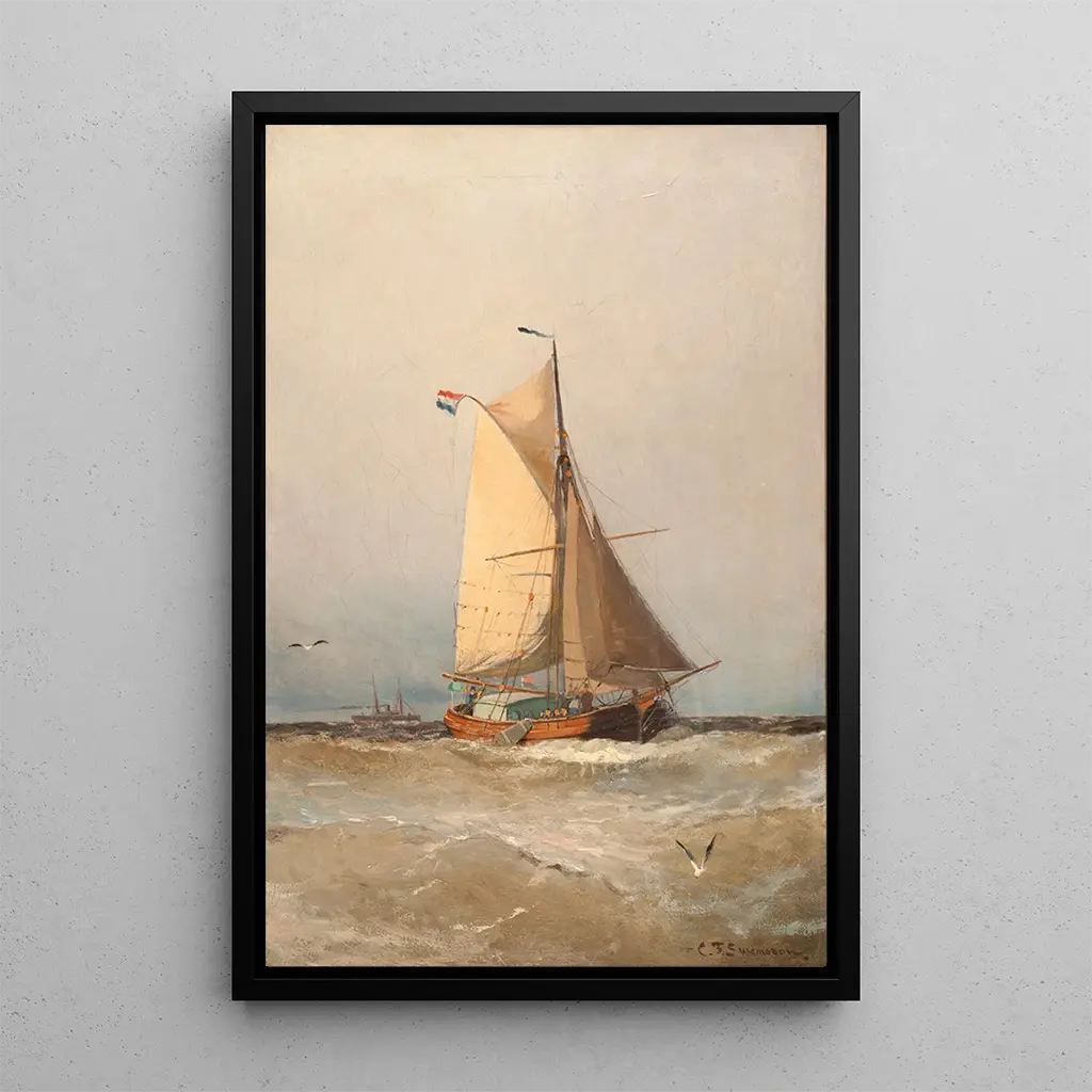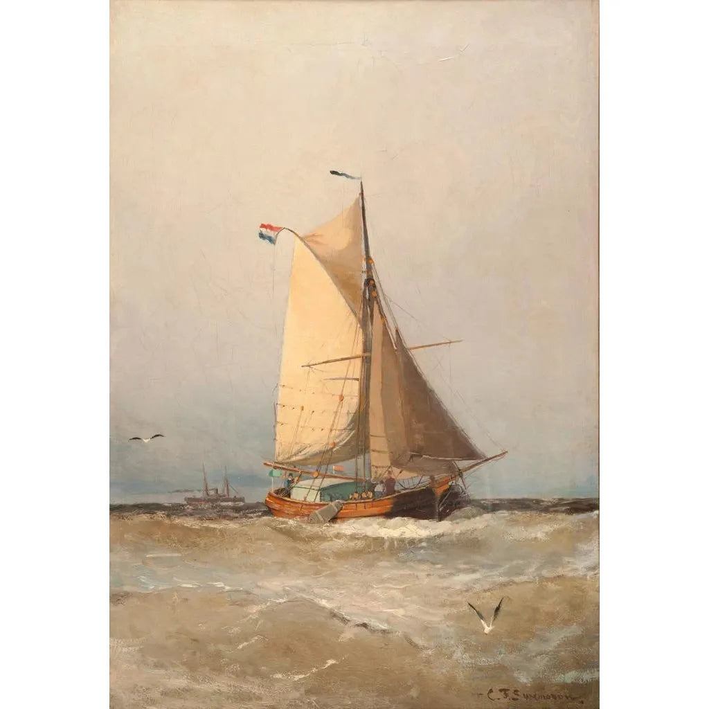 Christian Fredrik Svensson ist ein schwedischer Künstler des 19. Jahrhunderts, bekannt für seine Darstellungen des maritimen Lebens. Beeinflusst von der romantischen Bewegung, konnte er die Schönheit der Küstenlandschaften mit einer einzigartigen Sensibilität einfangen. Svensson verbrachte einen Großteil seiner Karriere damit, die Ufer und Häfen zu erkunden, was ihm ermöglichte, einen unverwechselbaren Stil zu entwickeln, der Präzision und Poesie vereint. Seine Werke, oft inspiriert von natürlichem Licht und atmosphärischen Variationen, zeugen von der Bedeutung des Meeres in der skandinavischen Kultur. Tjalk holländisch ist eines seiner ikonischen Werke und zeigt perfekt sein Talent, die Schönheit maritimer Szenen zu verewigen.
