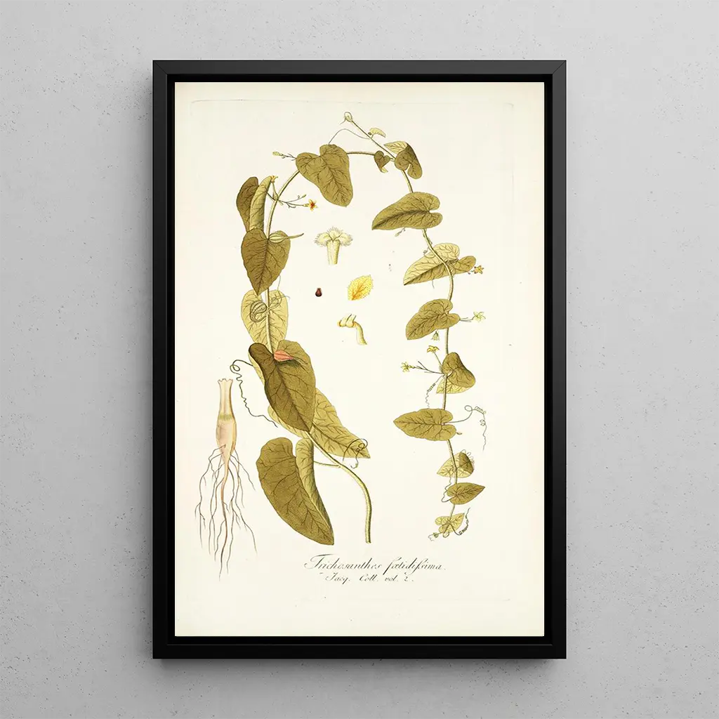 Trichosanthes foetidissima : eine Explosion von Farben und Formen Die kunstdrucke von Trichosanthes foetidissima entführen uns in eine lebendige Welt, in der die leuchtenden farben dieser tropischen pflanze den blick fesseln. Die lebendigen töne von gelb und grün, kombiniert mit touches von rot, schaffen ein lebendiges und dynamisches bild. Die technik des künstler, die aquarelle und zeichnung verbindet, ermöglicht es, die einzigartige textur dieser pflanze wiederzugeben, mit ihren glockenförmigen blüten und breiten blättern. Dieses werk ruft nicht nur die schönheit der natur hervor, sondern auch ihre geheimnisvolle und faszinierende seite. Nikolaus Joseph Freiherr von Jacquin : kunst im dienst der wissenschaft Nikolaus Joseph Freiherr von Jacquin, geboren 1727, ist eine ikonische figur der botanischen illustration im achtzehnten jahrhundert. Seine reisen durch die tropen haben sein wissen über exotische pflanzen bereichert, und sein werk ist geprägt von dem willen, die vielfalt der pflanzenwelt einzufangen. beeinflusst von den wissenschaftlichen strömungen seiner zeit, konnte Jacquin wissenschaftliche präzision mit künstlerischer sensibilität verbinden, wodurch seine kunstdrucke sowohl für botaniker als auch für kunstliebhaber referenzen sind. Sein erbe besteht fort und zeugt von der bedeutung der botanischen kunst. Eine dekorative anschaffung mit vielfältigen vorteilen Der kunstdruck von Trichosanthes foetidissima ist eine mutige dekorative wahl, die jeden raum aufhellen wird. Ob im wohnzimmer, büro oder schlafzimmer, dieses bild bringt frische und exotik in den raum. Seine druckqualität und die farbtreue machen es zu einem attraktiven werk für alle, die die schönheit der natur schätzen. Durch die integration dieses leinwandbildes in ihre dekoration schaffen sie eine warme und inspirierende atmosphäre, und ehren gleichzeitig die reiche tropische flora.