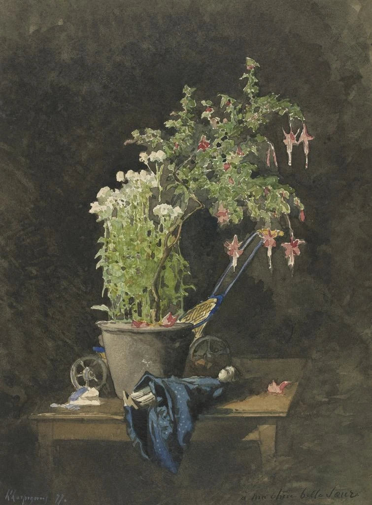 Ein Fuchsia im Topf mit Kinderspielzeug - Henri-Joseph Harpignies