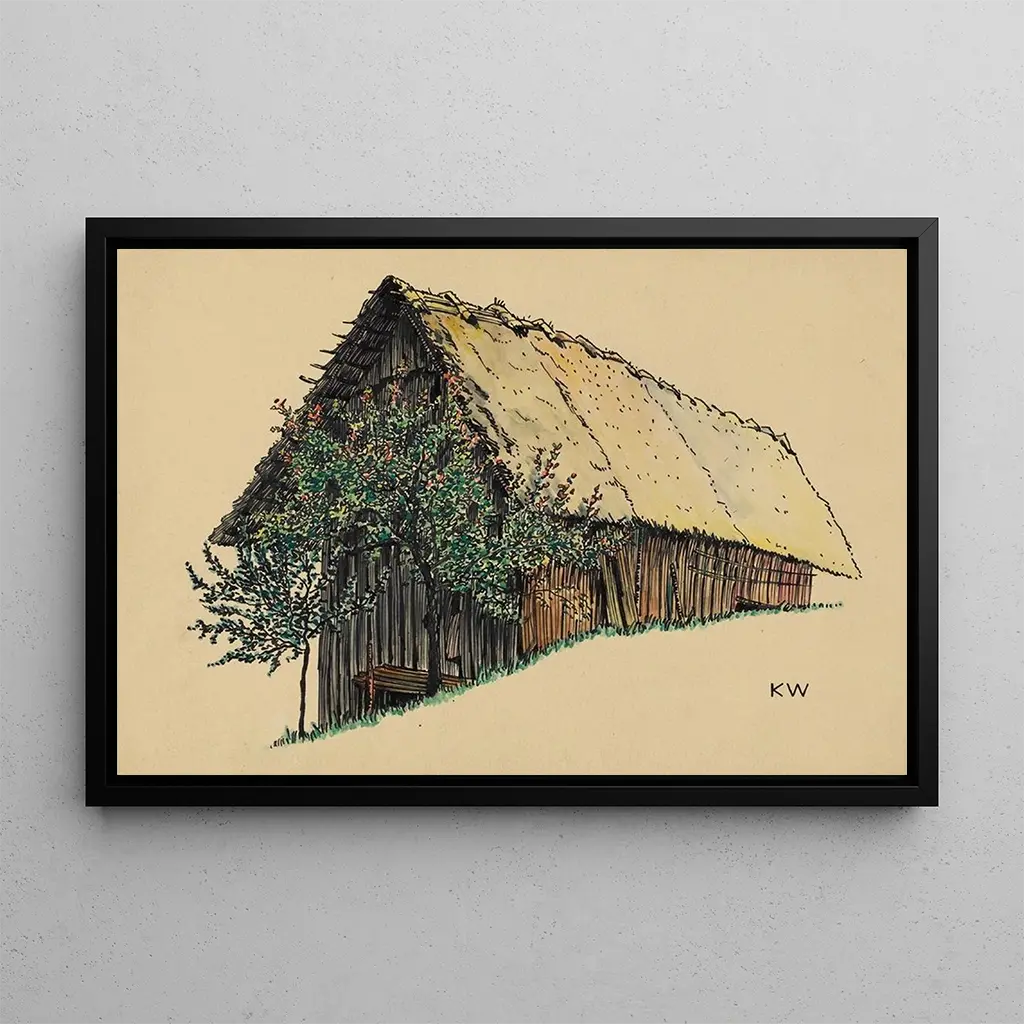 Karl Wiener, Künstler des 19. Jahrhunderts, ist bekannt für seine Fähigkeit, die Schönheit ländlicher Szenen einzufangen. Beeinflusst vom Impressionismus, verstand er es, Licht- und Farbelemente zu integrieren, die seine Werke lebendig und dynamisch machen. Seine Karriere, obwohl weniger bekannt als die seiner Zeitgenossen, prägte eine Epoche, in der sich die Kunst auf die Darstellung des Alltags und natürlicher Landschaften konzentrierte. Wiener hat einfache Momente festgehalten, wie diese Scheune, und damit die Bedeutung der Natur in der Kunst seiner Zeit unterstrichen. Seine Werke spiegeln das Landleben und die Harmonie zwischen Mensch und Umwelt wider.
