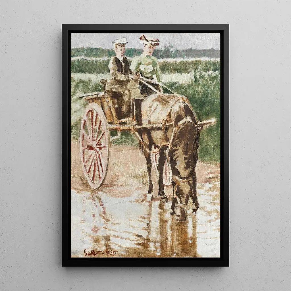 Tag der ersten Schauspielerin: ein Moment der Pause und Reflexion In dieser Reproduktion von Tag der ersten Schauspielerin fängt Walter Richard Sickert einen Moment der Ruhe im Leben einer Schauspielerin ein. Die Sanftheit der Farben und die harmonische Komposition vermitteln eine Atmosphäre von Gelassenheit und Intimität. Der Künstler spielt geschickt mit dem Licht, hebt die zarten Züge des Gesichts seines Subjekts hervor und schafft gleichzeitig ein Schattenspiel, das der Szene Tiefe verleiht. Dieses Gemälde, zugleich schlicht und ausdrucksstark, lädt uns ein, das Leben hinter den Kulissen zu betrachten und einen Moment der Verletzlichkeit und Ruhe zu entdecken. Walter Richard Sickert: der Künstler im Herzen der Moderne Walter Richard Sickert, geboren 1860, ist eine ikonische Figur der britischen impressionistischen Bewegung. Seine Karriere erstreckt sich über mehrere Jahrzehnte, in denen er sich als Innovator im Bereich der malerei etablierte. Beeinflusst von den großen französischen Meistern, entwickelte er einen einzigartigen Stil, der Realismus und Impressionismus verbindet. Sickert war auch ein aufmerksamer Beobachter des modernen Lebens und erfasste Theater- und Stadtansichten mit besonderer Sensibilität. Sein Werk inspiriert und fasziniert weiterhin und zeugt von seiner Bedeutung in der Kunstgeschichte. Eine dekorative Reproduktion mit vielfältigen Vorzügen Die Reproduktion von Tag der ersten Schauspielerin ist eine elegante Dekorationswahl für jeden Raum in Ihrem Zuhause. Ob im Wohnzimmer, Büro oder Schlafzimmer, dieses Bild verleiht Eleganz und Kultur. Seine hochwertige Druckqualität und die zarten Nuancen machen es zu einem fesselnden Kunstwerk, das Ihre Gäste begeistern wird. Durch die Integration dieses Leinwandbildes in Ihre Dekoration schaffen Sie einen Raum, der sowohl künstlerisch als auch einladend ist, in dem jeder Blick in die Schönheit des Moments, eingefangen von Sickert, verloren geht.
