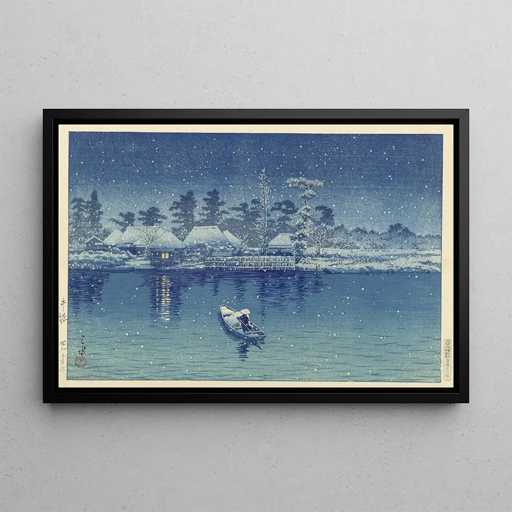 Ushibori : ein visueller poetischer Ausdruck der vergänglichen Schönheit Das Werk Ushibori von Kawase Hasui vermittelt eine zarte Gelassenheit, bei der sich die Natur unter einem bewölkten Himmel offenbart. Die sanften Töne von Blau und Grau verschmelzen harmonisch und schaffen eine beruhigende Atmosphäre. Die Holzschnitttechnik, charakteristisch für die japanische Druckkunst, erweckt jedes Detail zum Leben, von den Wasserwellen bis zu den Silhouetten der Bäume. Dieser kunstdruck lädt zu einer stillen Betrachtung ein, bei der der Betrachter fast das Flüstern der Brise hören kann. Hasui gelingt es, das Wesen der Ruhe einzufangen und ein Fenster in eine Welt zu öffnen, in der die Zeit stillzustehen scheint. Kawase Hasui : der Meister des modernen kunstdrucks Kawase Hasui, eine ikonische Figur der ukiyo-e-Bewegung, vereinte Tradition und Moderne während seiner gesamten Karriere. Geboren 1883, wurde er von den Landschaften seines Heimatlandes Japan und den Techniken der alten Meister beeinflusst. Sein Werk ist Teil der Strömung des modernen kunstdrucks, in der er das Genre erneuerte und gleichzeitig seine Wurzeln bewahrte. Hasui spielte eine entscheidende Rolle bei der Wiederentdeckung des japanischen kunstdrucks im 20. Jahrhundert und trug zu seiner internationalen Bekanntheit bei. Seine poetischen Landschaften zeugen von einer einzigartigen Sensibilität für die natürliche Schönheit und machen ihn zu einem unverzichtbaren Künstler seiner Zeit. Eine dekorative Anschaffung mit vielfältigen Vorzügen Der Ushibori kunstdruck ist ein dekoratives Stück, das jeden Raum bereichern wird, sei es in einem eleganten Wohnzimmer, einem inspirierenden Büro oder einem beruhigenden Schlafzimmer. Seine Druckqualität, die den Originalwerken treu bleibt, garantiert eine beeindruckende visuelle Darstellung, während die Authentizität des Werks von Hasui bewahrt wird. Mit seinem unbestreitbaren ästhetischen Reiz verleiht dieses Bild Ihrer Dekoration eine Note von Gelassenheit und Raffinesse. Gönnen Sie sich eine visuelle Reise durch Japan und profitieren Sie gleichzeitig von den Vorteilen einer ruhigen und harmonischen Atmosphäre.