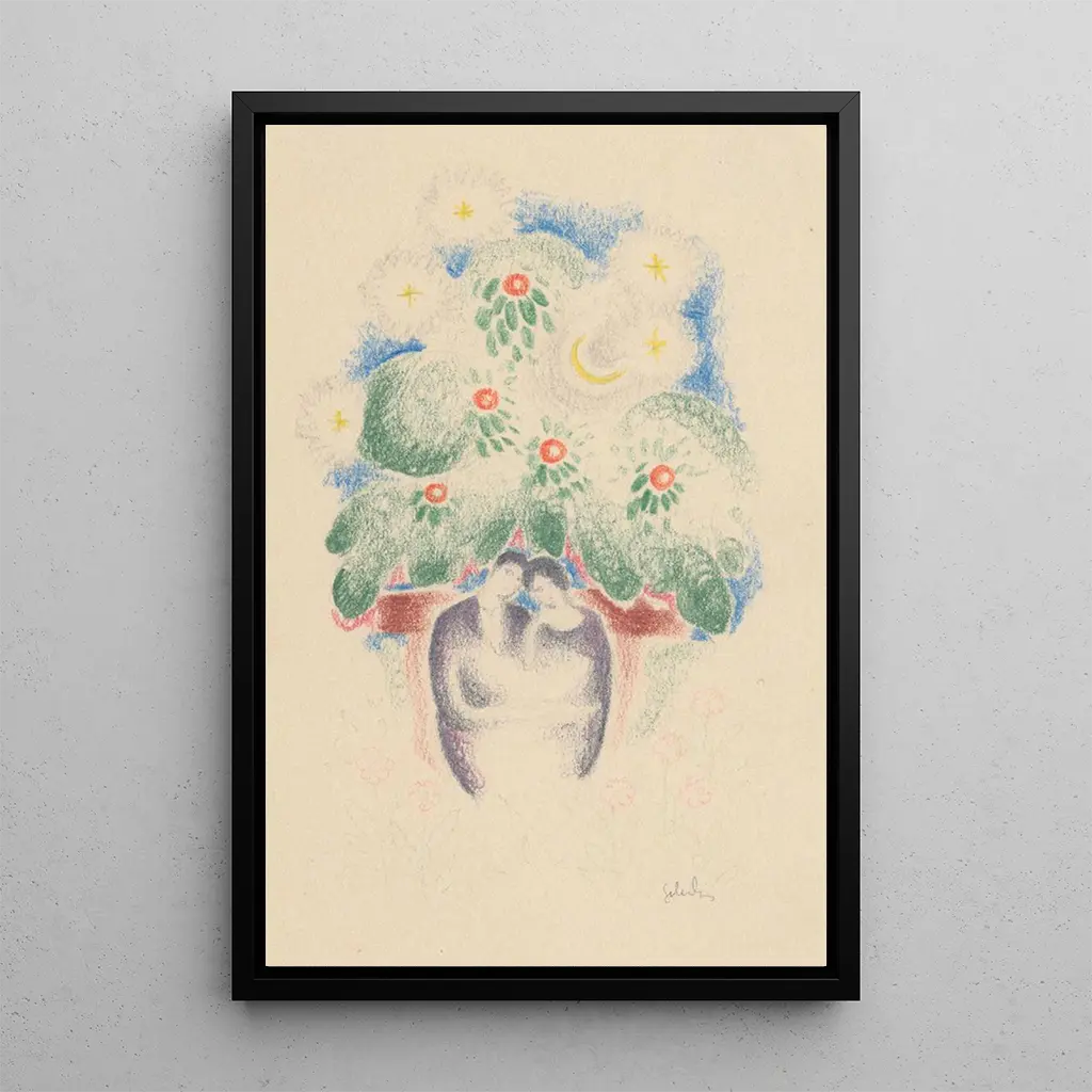 In diesem zarten Werk fängt Mikuláš Galanda einen Moment der Sanftheit zwischen zwei Liebenden ein, die auf einer Bank sitzen. Die warmen Farben und die Pastelltöne schaffen eine romantische Atmosphäre, während das sanfte Licht die Figuren mit einer Aura der Gelassenheit umgibt. Die Komposition, zugleich schlicht und ausdrucksstark, lädt den Betrachter ein, in die Intimität dieser Szene einzutauchen, in der die Zeit stillzustehen scheint. Die detaillierten Ausdrücke und Haltungen zeugen von außergewöhnlichem Talent, menschliche Emotionen einzufangen, was diese reproduction des Gemäldes Amoureux sur un banc besonders berührend macht.
