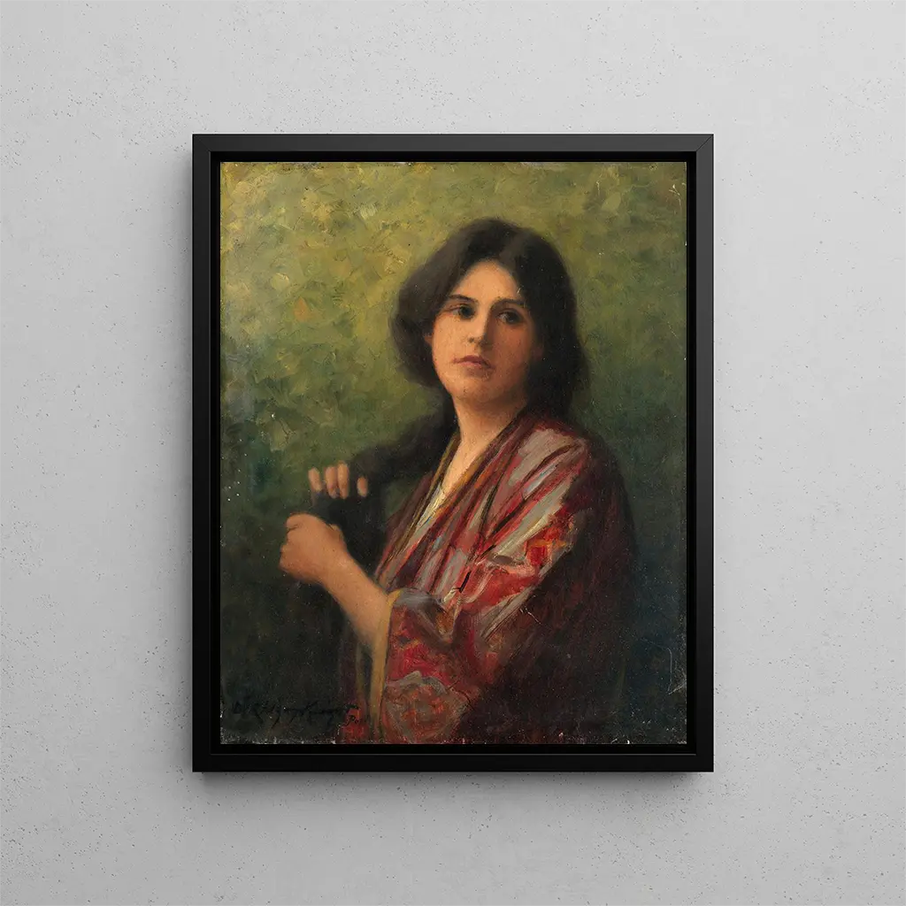 Der Stil von Daniel Ridgway Knight zeichnet sich durch eine beeindruckende Beherrschung von Licht und Farben aus. In "Verloren in seinen Gedanken" schaffen die feinen Nuancen von Grün und Braun eine beruhigende Atmosphäre, während das sanfte Licht, das die Szene durchflutet, die detaillierten Gesichtszüge und Kleidungsstücke der Figur hervorhebt. Diese Aufmerksamkeit für natürliche Elemente sowie die subtile Ausdruckskraft der Emotionen verleihen dem Werk eine fast greifbare Dimension. Knight, ein wahrer Dichter der Malerei, gelingt es, einen Moment der Verletzlichkeit einzufangen, in dem die Figur zwischen Traum und Wirklichkeit zu schweben scheint. Die Komposition, ausgewogen und harmonisch, lenkt den Blick des Betrachters durch das Gemälde und lädt jeden ein, über die Gedanken nachzudenken, die den Geist der dargestellten Person durchströmen. So zeichnet sich dieses Werk durch seine Fähigkeit aus, eine kontemplative Atmosphäre zu erzeugen, die dennoch in einer greifbaren Realität verwurzelt ist.