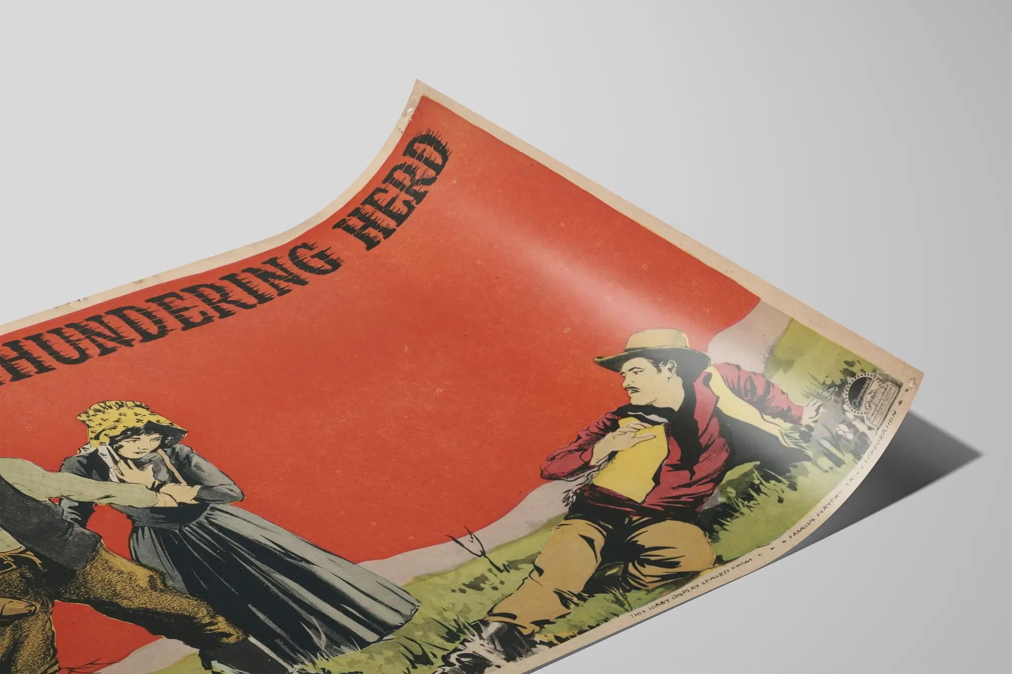 Entdecken Sie dieses Vintage-Poster mit dem Titel „The Thundering Herd“, inspiriert von dem Werk von Zane Grey, einem Klassiker des amerikanischen Westerns. Diese Wanddekoration erinnert an eine typische Szene aus dem Wilden Westen, die drei Figuren in einer offenen Landschaft mit einem intensiven roten Himmel im Hintergrund zeigt. Der deutliche Kontrast zwischen den warmen Farbtönen und den in zurückhaltenden Tönen gekleideten Figuren erzeugt einen beeindruckenden visuellen Effekt. Dieses Poster ist ideal für Liebhaber von Wanddekorationen mit Western- oder Vintage-Motiven und verleiht jedem Raum eine dramatische und nostalgische Atmosphäre. Leicht einzurahmen, lässt es sich sowohl im Wohnzimmer, im Büro als auch im Freizeitraum integrieren und setzt einen Hauch von Originalität sowie einen Bezug zur klassischen Filmgeschichte. Der grafische Stil und die typografischen Zeichen am oberen Rand des Posters verstärken den Retro- und Authentizitätscharakter dieses Kunstwerks. Perfekt für Fans alter Poster und inspirierender Dekorationen ist dieses „The Thundering Herd“-Poster eine elegante Wahl für eine einzigartige und ausdrucksstarke Wandgestaltung.