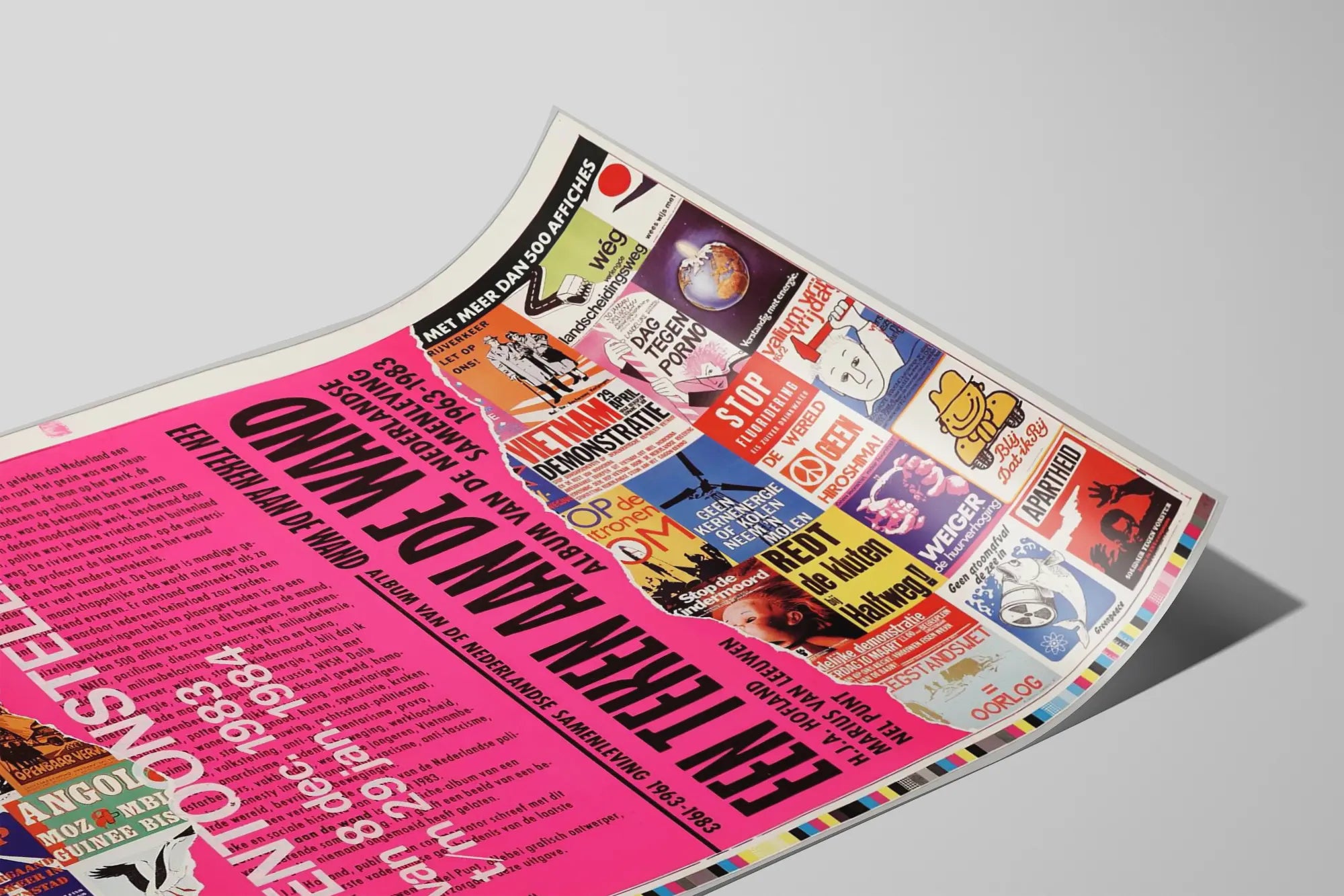 Dieses Vintage-Poster mit dem Titel „Een Teken aan de Wand“ ist ein einzigartiges Wanddekorationselement, das den rebellischen Geist und die sozialen Kämpfe in den Niederlanden zwischen 1963 und 1983 einfängt. Mit einem Design, das aus zahlreichen kleinen, bunten und symbolischen Postern besteht, bietet es einen reichen und detaillierten Einblick in die politische und gesellschaftliche Protestbewegung dieser Zeit. Dieses Poster ist ideal für Geschichts- und Kulturinteressierte sowie für jene, die ihrem Interieur einen retro-inspirierten und engagierten Akzent verleihen möchten.