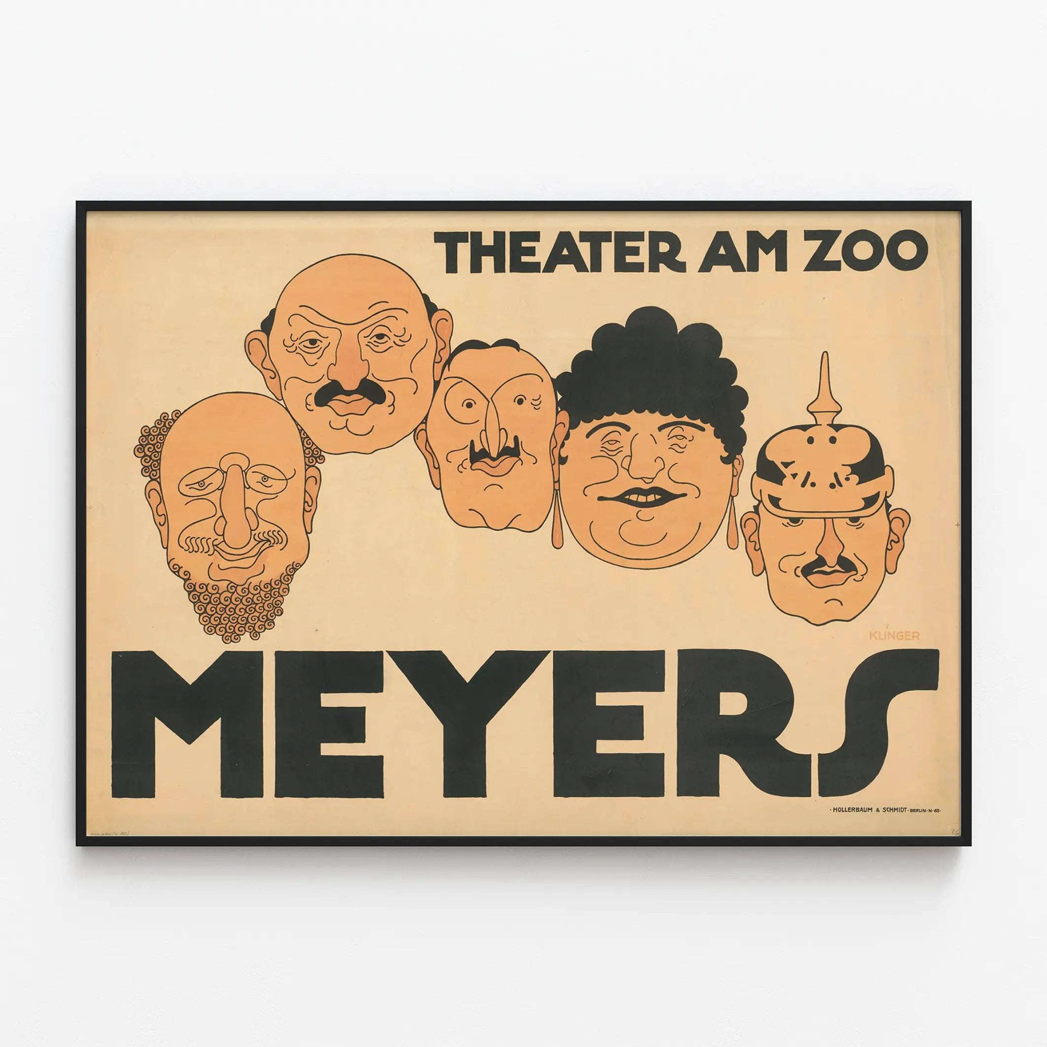 Verleihen Sie Ihrem Raum einen kulturellen und künstlerischen Akzent mit diesem bemerkenswerten Plakat. Leicht rahmbar, lässt es sich auch gut mit anderen Postern oder Gemälden kombinieren, um eine thematische Wandgalerie zu erstellen. Voll vintage und voller Charakter stellt diese Wanddekoration „Theater am Zoo Meyers“ eine hervorragende Ergänzung zu jeder Sammlung alter oder theaterbezogener Poster dar.
