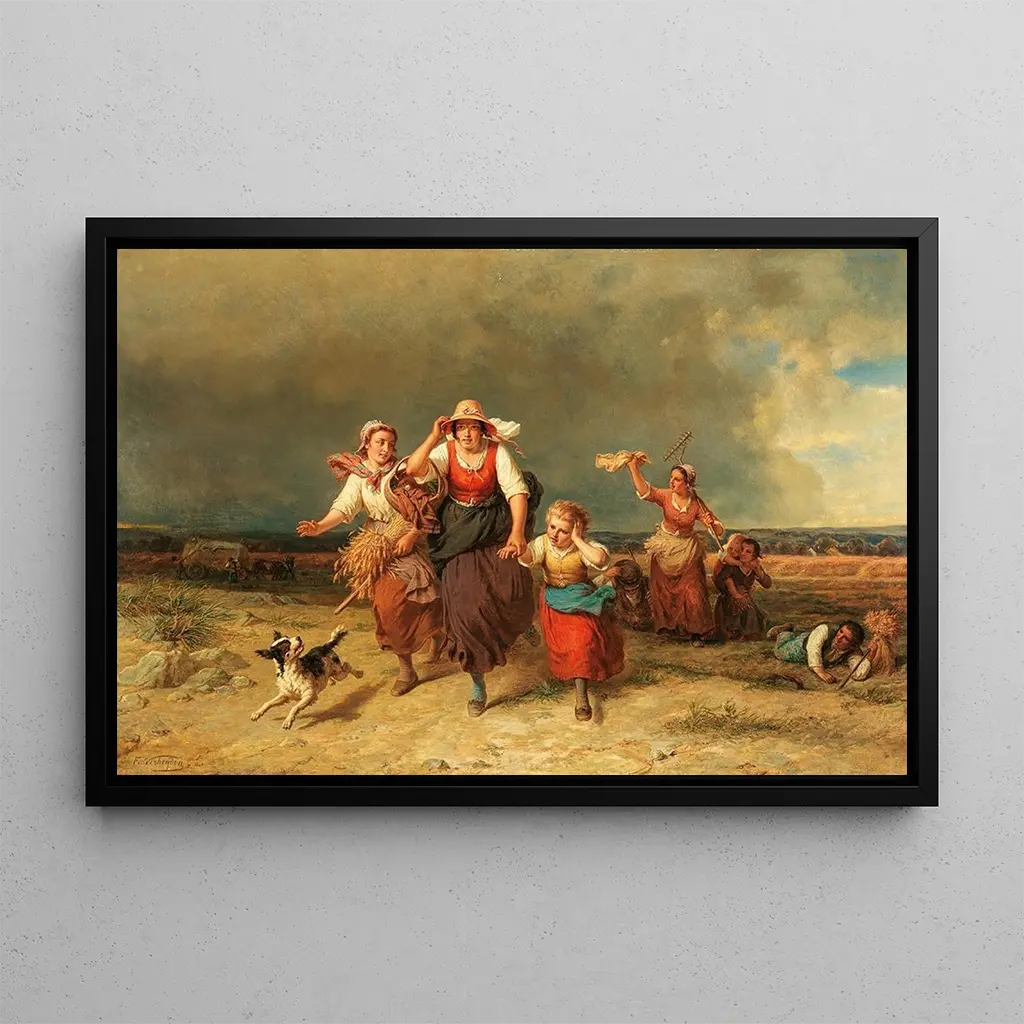 Avant la pluie : ein Moment der Spannung und Schönheit "Avant la pluie" von François Verheyden fängt einen flüchtigen Moment ein, in dem die Natur den Atem anhält, bevor ein Sturm aufzieht. Die dunklen Wolken sammeln sich am Himmel, während das Sonnenlicht kämpft, um durch die drohenden Schatten zu dringen. Die Technik von Verheyden, die zarte Pinselstriche verwendet, um die Reflexionen auf dem Wasser darzustellen, schafft eine Atmosphäre, die sowohl dramatisch als auch poetisch ist. Die Töne von Blau und Grau dominieren die Komposition und verstärken die spürbare Spannung dieses Moments vor dem Gewitter, und laden den Betrachter ein, die drohende Regenfront zu fühlen. François Verheyden : ein Meister der belgischen Landschaft François Verheyden, aktiv im 19. Jahrhundert, ist bekannt für seine Landschaften, die die flüchtige Schönheit der belgischen Natur einfangen. Beeinflusst vom Realismus und Romantik, verstand er es, die Nuancen von Licht und Atmosphäre in seinen Werken feinfühlig zu übersetzen. Verheyden hat oft Szenen der belgischen Landschaft gemalt, wobei er die Beziehung zwischen Mensch und Umwelt in den Vordergrund stellte. "Avant la pluie" ist emblematisch für seinen Stil und zeigt sein Talent, Emotionen durch Landschaften hervorzurufen, während es die Bedeutung der Natur in der Kunst seiner Zeit unterstreicht. Eine dekorative Ergänzung mit vielfältigen Vorzügen Der kunstdruck von "Avant la pluie" ist eine faszinierende Ergänzung Ihrer Inneneinrichtung, sei es im Wohnzimmer, Büro oder Schlafzimmer. Seine dramatische Atmosphäre und die nuancierten Farben verleihen jedem Raum Eleganz und Tiefe. Die Qualität des kunstdrucks garantiert eine Treue zur Originalarbeit, sodass Sie die Meisterschaft von Verheyden voll und ganz genießen können. Durch die Integration dieses Leinwandbildes in Ihre Dekoration schaffen Sie einen Blickfang, der Gespräche anregt und zur Kontemplation einlädt, während er Ihre Umgebung mit künstlerischer Schönheit bereichert.