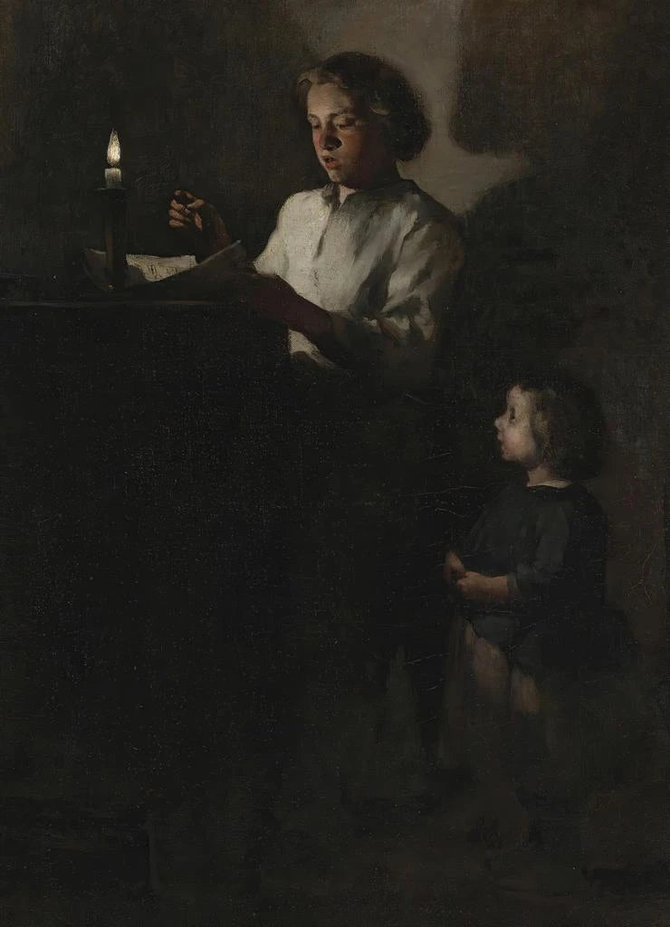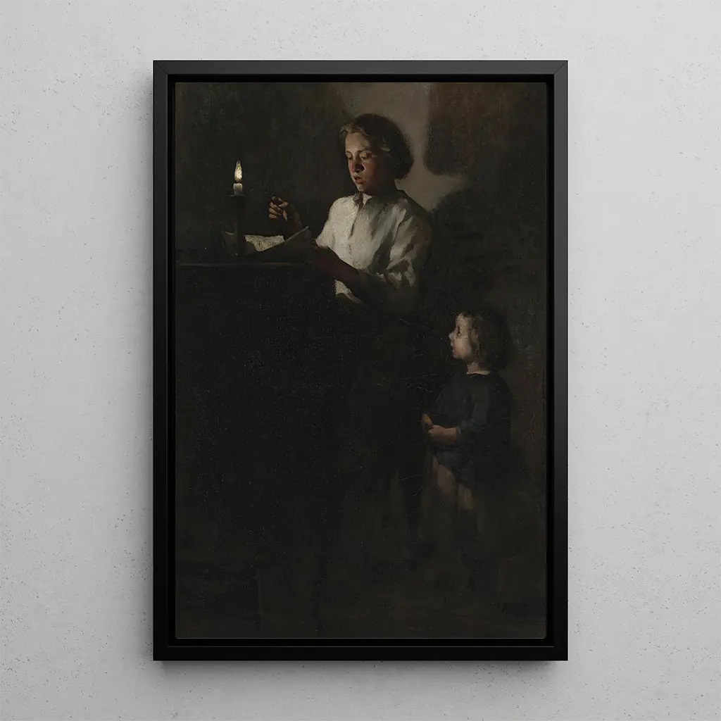 Lesen bei Kerzenlicht, ein fesselndes Werk von Théodule Ribot, entführt den Betrachter in eine Welt sanfter Intimität. Die Szene zeigt eine junge Frau, die in ihrem Buch vertieft ist, erleuchtet vom flackernden Schein einer Kerze. Die warmen Farben und die zarten Schatten schaffen eine ruhige und kontemplative Atmosphäre. Die Meisterschaft von Ribot im Umgang mit Licht, das mit Reflexionen und Kontrasten spielt, erweckt diese Komposition zum Leben und macht die Emotion dieses schwebe Moments fast greifbar. Das Werk lädt dazu ein, über die Macht der Worte und die Magie der geteilten Momente mit einem Buch nachzudenken.