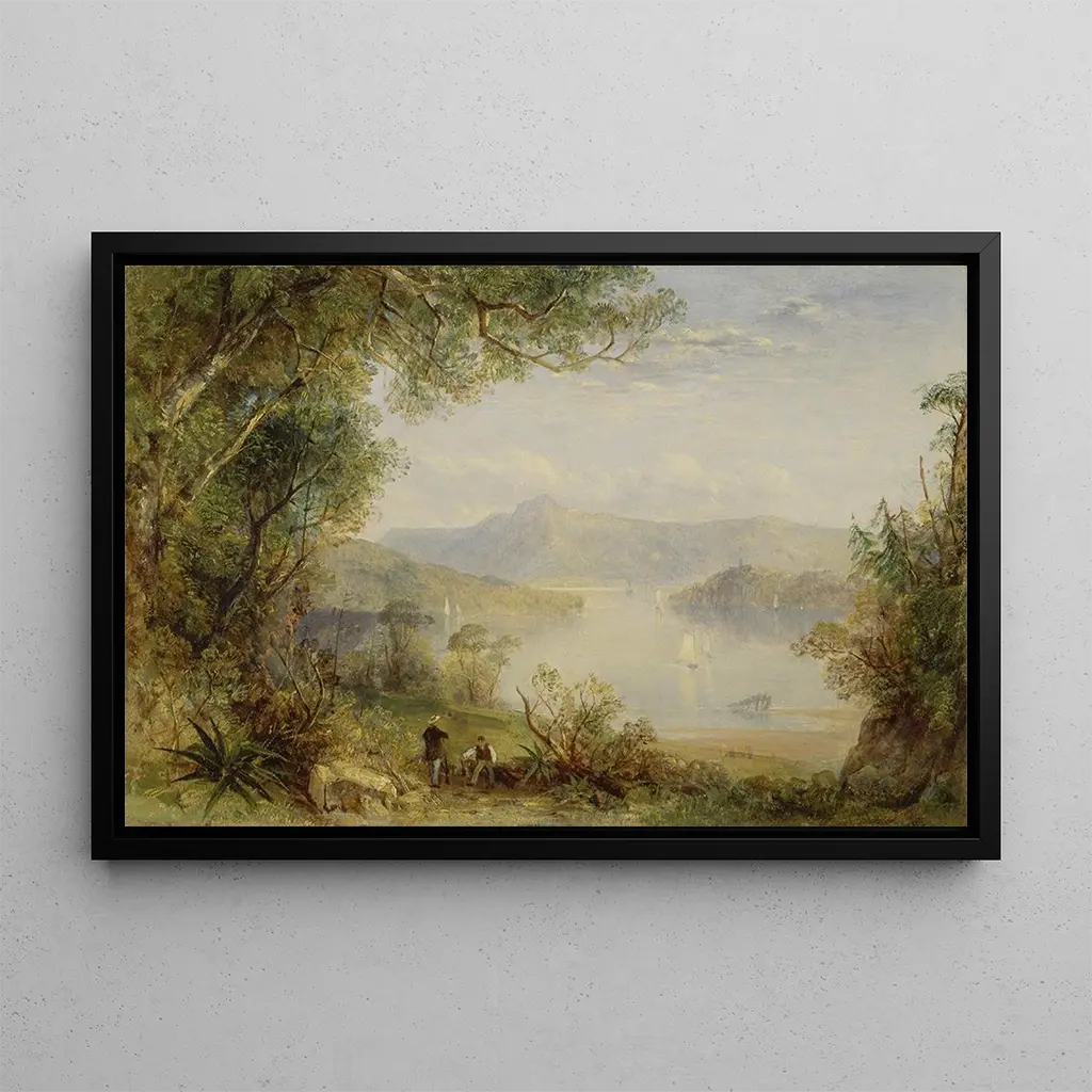 Der Künstler dieses Werks, aktiv im 19. Jahrhundert, gehört zum romantischen Strom, der die Natur und grandiose Landschaften verherrlichte. Diese künstlerische Bewegung, die zu dieser Zeit in voller Blüte stand, suchte, die menschlichen Emotionen angesichts der Schönheit der natürlichen Welt einzufangen. Beeinflusst von seinen Zeitgenossen, entwickelte der Künstler einen einzigartigen Stil, der Licht und Farbe betonte, um Gefühle von Frieden und Staunen hervorzurufen. Der Blick auf den Hudson-Fluss ist emblematisch für diese Periode, in der die Natur als Zufluchtsort gegen die Turbulenzen des modernen Lebens gefeiert wurde.