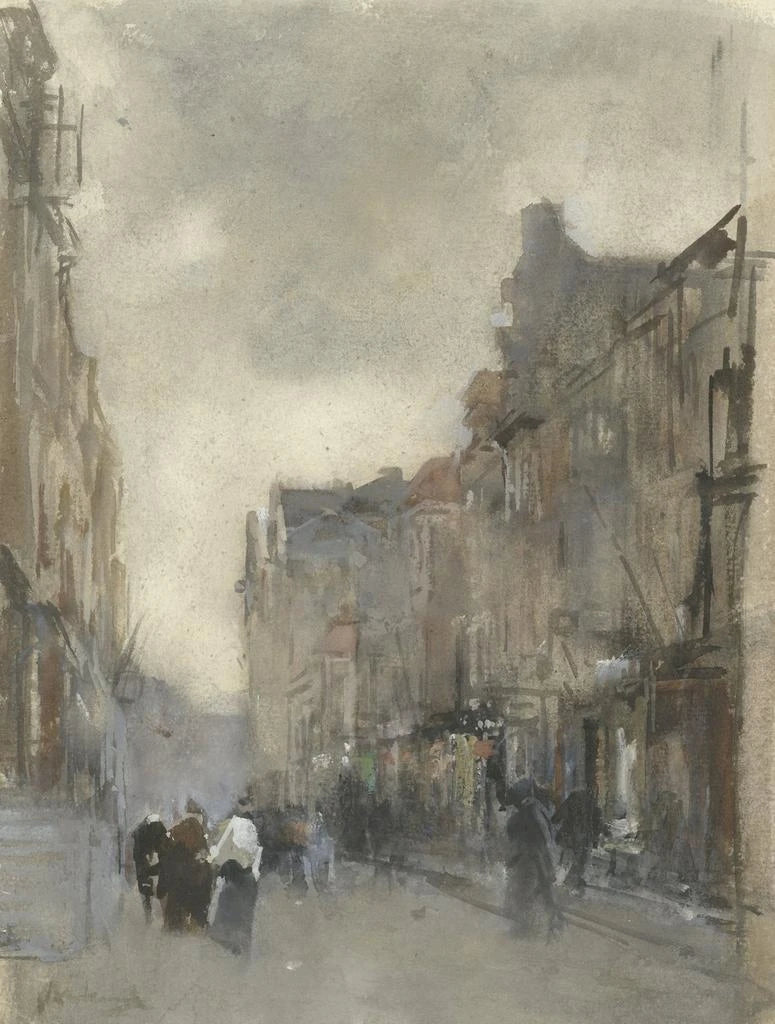 Der Stil von Floris Arntzenius zeichnet sich durch eine beeindruckende Beherrschung von Licht und Farbe aus. In Vue de la rue à La Haye gelingt es ihm, eine Atmosphäre zu schaffen, die sowohl warmherzig als auch dynamisch ist. Das Spiel von Schatten und Licht, die Fluidität der Bewegungen der Passanten, all dies zeugt von einer seltenen künstlerischen Sensibilität. Arntzenius verwendet zarte Pinselstriche, um den Fassaden der Gebäude und den Reflexen auf den nassen Pflastersteinen Leben einzuhauchen, und fängt so das Wesen der Stadt ein. Seine impressionistische Technik, verbunden mit einem Hauch von Realismus, ermöglicht es, jedes Element der Komposition auf eine fast greifbare Weise darzustellen. Dieses Werk beschränkt sich nicht darauf, eine Szene zu schildern; es evoziert eine Atmosphäre, eine Emotion, eine Geschichte.