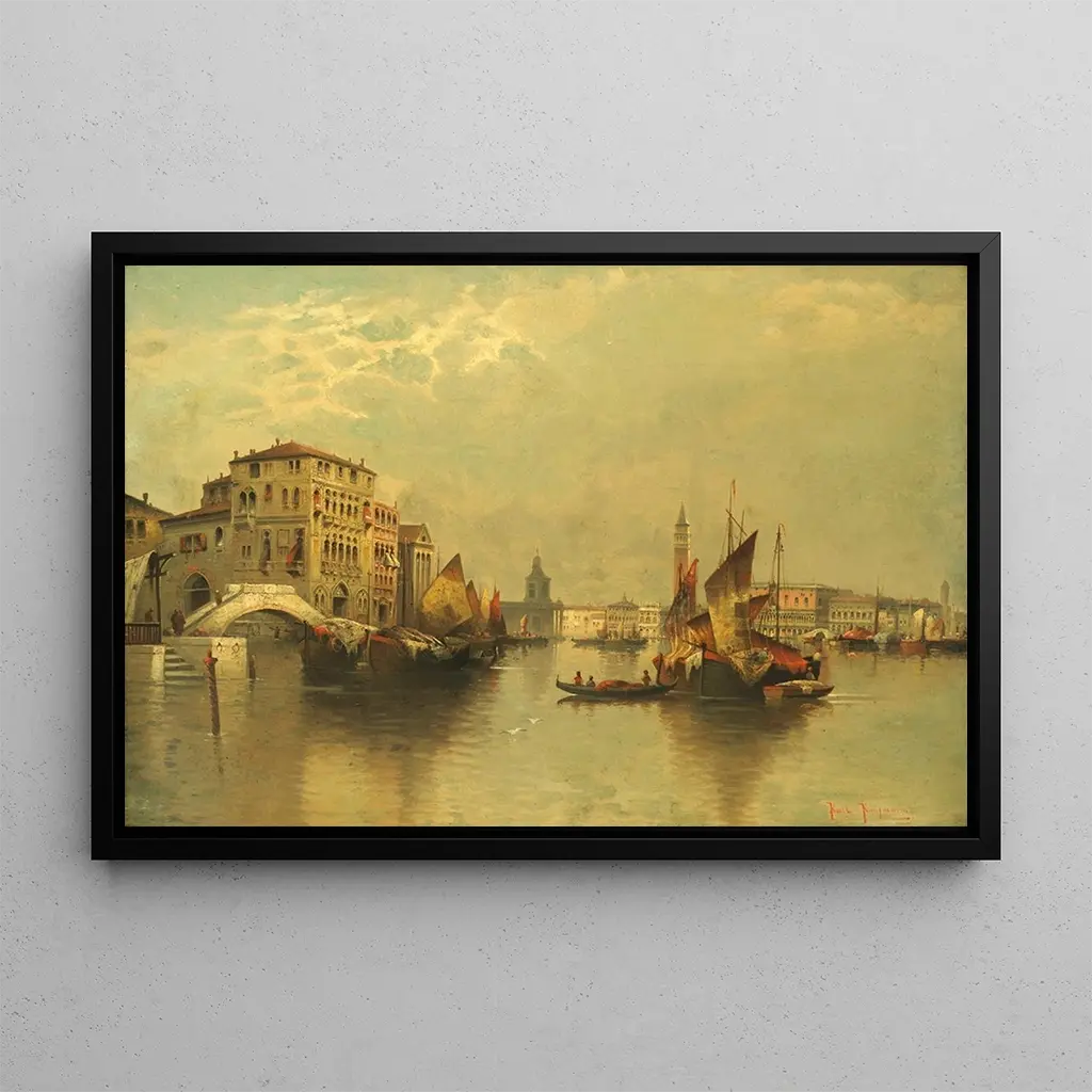 Vue de Venise : ein Gemälde voller Gelassenheit und Licht Die reproduction von "Vue de Venise" von Karl Kaufmann lädt zu einer visuellen Flucht in die zeitlose Schönheit dieser ikonischen Stadt ein. Die sanften Farben und Pastelltöne schaffen eine beruhigende Atmosphäre, während das Licht auf den ruhigen Wasserflächen der Kanäle spielt. Die Aquarelltechnik, zart und raffiniert, ermöglicht es, die Transparenz der Reflexionen und die Sanftheit der venezianischen Himmel einzufangen. Jedes Detail, von den Gondeln, die auf dem Wasser gleiten, bis zu den Fassaden der Paläste, erzählt eine Geschichte von Romantik und Geheimnis und macht dieses Werk zu einem wahren visuellen Gedicht. Karl Kaufmann : ein Meister des Impressionismus Karl Kaufmann, aktiv am Ende des 19. Jahrhunderts und zu Beginn des 20. Jahrhunderts, ist ein bedeutender Vertreter des Impressionismus. Beeinflusst von den großen Meistern seiner Zeit, konnte er einen einzigartigen Stil entwickeln, der Licht und Farbe feiert. Seine Reisen nach Italien, insbesondere nach Venedig, haben sein Werk tief geprägt und ihm ermöglicht, die Essenz dieser verzauberten Landschaften einzufangen. Obwohl weniger bekannt als seine Zeitgenossen, hat Kaufmann einen bleibenden Eindruck in der Welt der Kunst hinterlassen und die flüchtige Schönheit des Alltagsmoments durch seine lebendigen Gemälde dargestellt. Eine dekorative Anschaffung mit vielfältigen Vorteilen Die reproduction von "Vue de Venise" ist ein ideales dekoratives Stück, um Ihr Interieur zu verschönern, sei es im Wohnzimmer, im Büro oder im Schlafzimmer. Die Druckqualität garantiert eine bemerkenswerte Treue zu den Farben und Details des Originalwerks und verleiht Ihrem Raum einen Hauch von Eleganz und Gelassenheit. Die ästhetische Anziehungskraft dieses Leinwandbildes macht es zur perfekten Wahl für alle, die eine beruhigende und inspirierende Atmosphäre schaffen möchten. Gönnen Sie sich diese reproduction und lassen Sie sich täglich von der Magie Venedigs verzaubern.