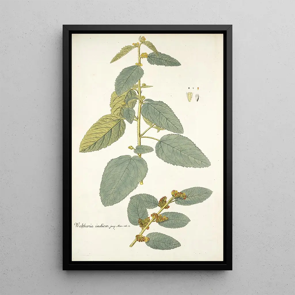 Waltheria indica : eine tropische Schönheit enthüllt Die reproduction von Waltheria indica entführt uns in eine üppige Welt, in der die Zartheit der Blumen und die Farbvielfalt aufeinandertreffen. Das Werk von Nikolaus Joseph Freiherr von Jacquin fängt die feinen Nuancen dieser tropischen Pflanze mit Feinfühligkeit ein und evoziert eine Atmosphäre von Frische und Exotik. Die detaillierten Details, von den Blütenblättern bis zu den Blättern, werden mit einer Präzision wiedergegeben, die tiefen Respekt vor der Natur zeigt. Die Farbpalette, die zwischen tiefem Grün und leuchtendem Gelb schwankt, schafft eine visuelle Harmonie, die zur Kontemplation und Flucht einlädt. Nikolaus Joseph Freiherr von Jacquin: ein Meister der botanischen Illustration Nikolaus Joseph Freiherr von Jacquin, eine ikonische Figur des 18. Jahrhunderts, ist bekannt für seine Beiträge zur botanischen Illustration. Als Botaniker und Künstler verstand er es, Wissenschaft und Ästhetik zu verbinden und die Schönheit der Pflanzen durch seine Werke zu ehren. Beeinflusst von den botanischen Entdeckungen seiner Zeit, reiste Jacquin um die Welt, sammelte Exemplare und illustrierte sie mit bemerkenswerter Präzision. Seine Werke, darunter Waltheria indica, sind zu Referenzen im Bereich geworden und zeugen von der Bedeutung der Botanik in Kunst und Wissenschaft. Eine dekorative Anschaffung mit vielfältigen Vorteilen Die reproduction von Waltheria indica ist ein dekoratives Stück, das jeden Wohnraum bereichern wird. Ob im Wohnzimmer, im Büro oder im Schlafzimmer, dieses Bild bringt eine Note von Exotik und Frische in Ihre Dekoration. Seine Druckqualität und die Treue zu den Originalfarben machen es zu einer idealen Wahl für Kunst- und Botanikliebhaber. Durch die Integration dieses Werks in Ihr Interieur schaffen Sie eine inspirierende und beruhigende Umgebung und würdigen gleichzeitig das künstlerische Erbe von Nikolaus Joseph Freiherr von Jacquin. Diese Leinwand ist viel mehr als nur eine Dekoration – sie ist eine wahre Hommage an die Schönheit der Natur.