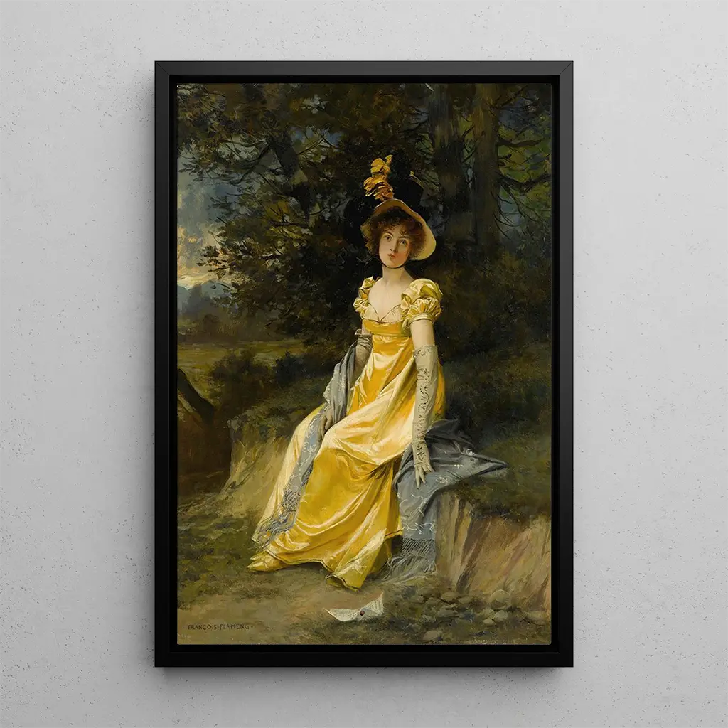 „Erwartung“ von François Flameng ist ein Werk, das Melancholie und Kontemplation evoziert. Die Komposition, die sich auf eine weibliche Figur konzentriert, zeigt eine Frau, die in ihre Gedanken vertieft ist, umgeben von einer Landschaft, die im Zeitlosen zu verharren scheint. Die sanften Farben und zarten Nuancen schaffen eine intime, fast träumerische Atmosphäre. Die Technik Flamengs, die Realismus und Impressionismus verbindet, ermöglicht es, die Emotion dieses angehaltenen Moments zu spüren. Jedes Detail, vom Faltenwurf des Kleides bis zu den subtilen Gesichtsausdrücken, trägt zur Tiefe dieses Kunstwerks bei und lädt den Betrachter ein, diese poetische Pause zu teilen.